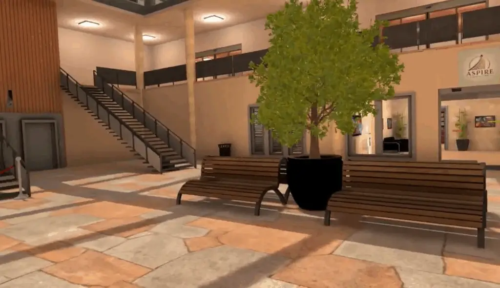 will transport you to a shopping mall where you will access a variety of businesses (retail,