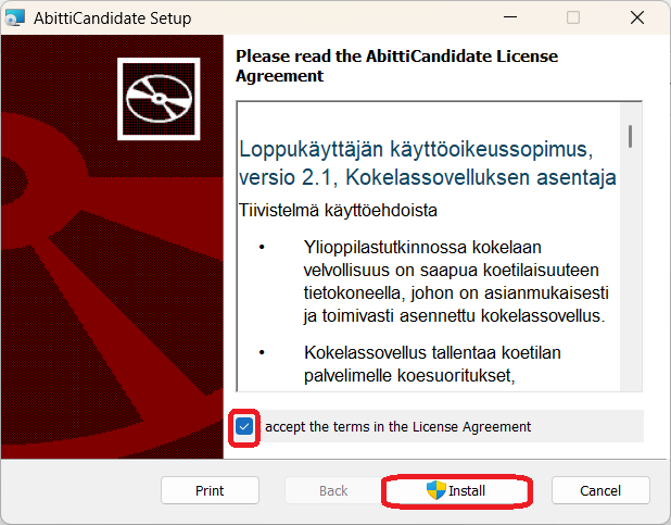 Kun päivität AbittiCandidate-kokelassovellusta, uudempi versio asennetaan vanhan päälle. Asennus poistaa vanhan version ja Abitti-tunnuksen automaattisesti ja luo uudet.