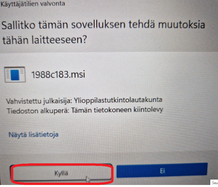 Salli sovelluksen tehdä muutoksia tietokoneellesi.