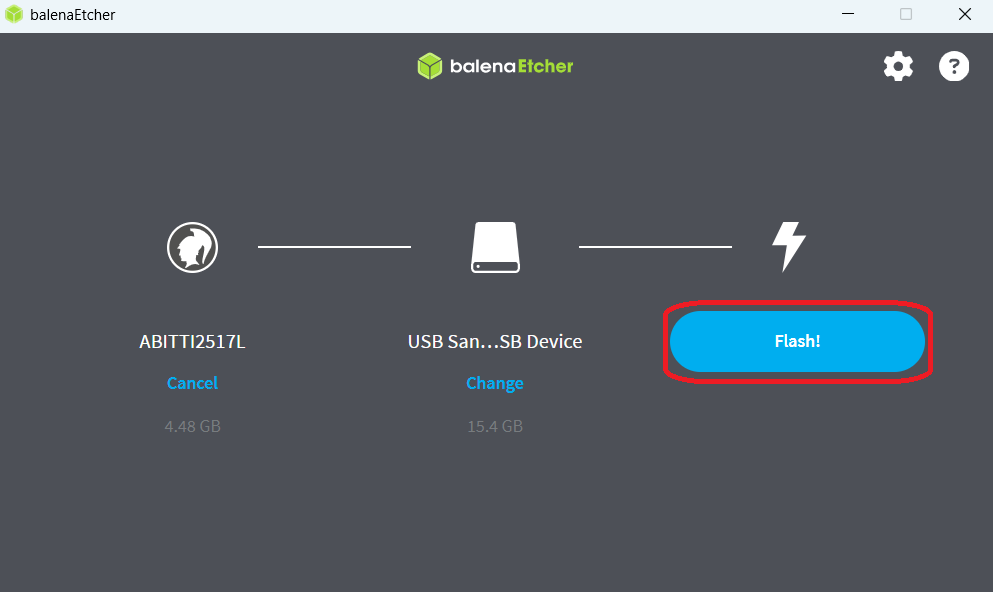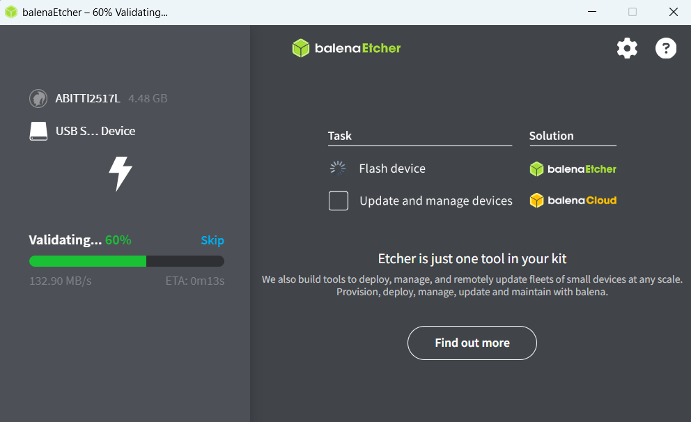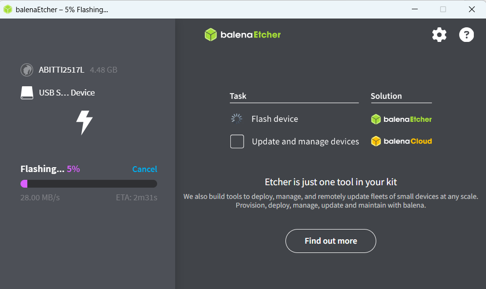 - Nyt balenaEtcher on valmis kirjoittamaan tikulle ABITTI-version.