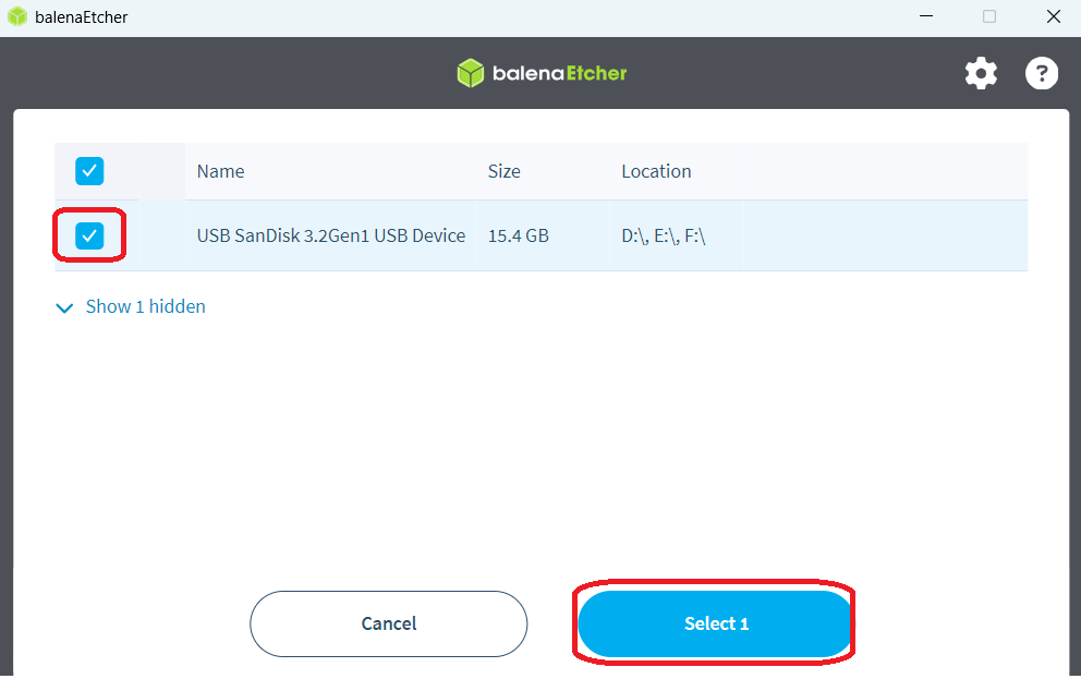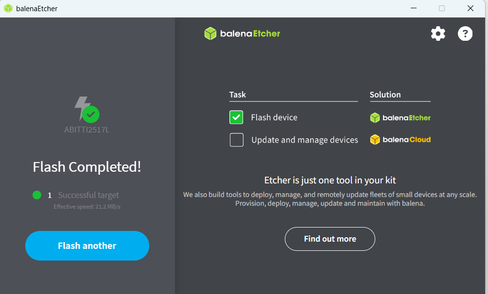 - Sulje balenaEtcher, irrota tikku ja kiinnitä se uudelleen koneeseen.