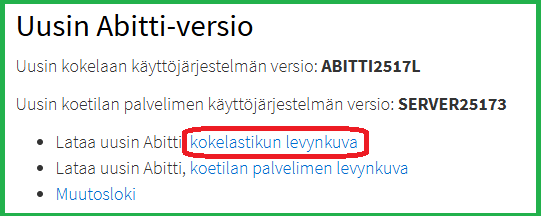 - Valitse Lataa uusin Abitti, kokelastikun levykuva.