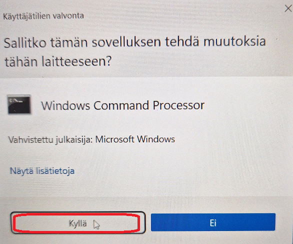 - Kun koneelle asennetaan ohjelma, sinulla täytyy olla järjestelmänvalvojan oikeudet salliaksesi sovelluksen tehdä muutoksia laitteeseesi.