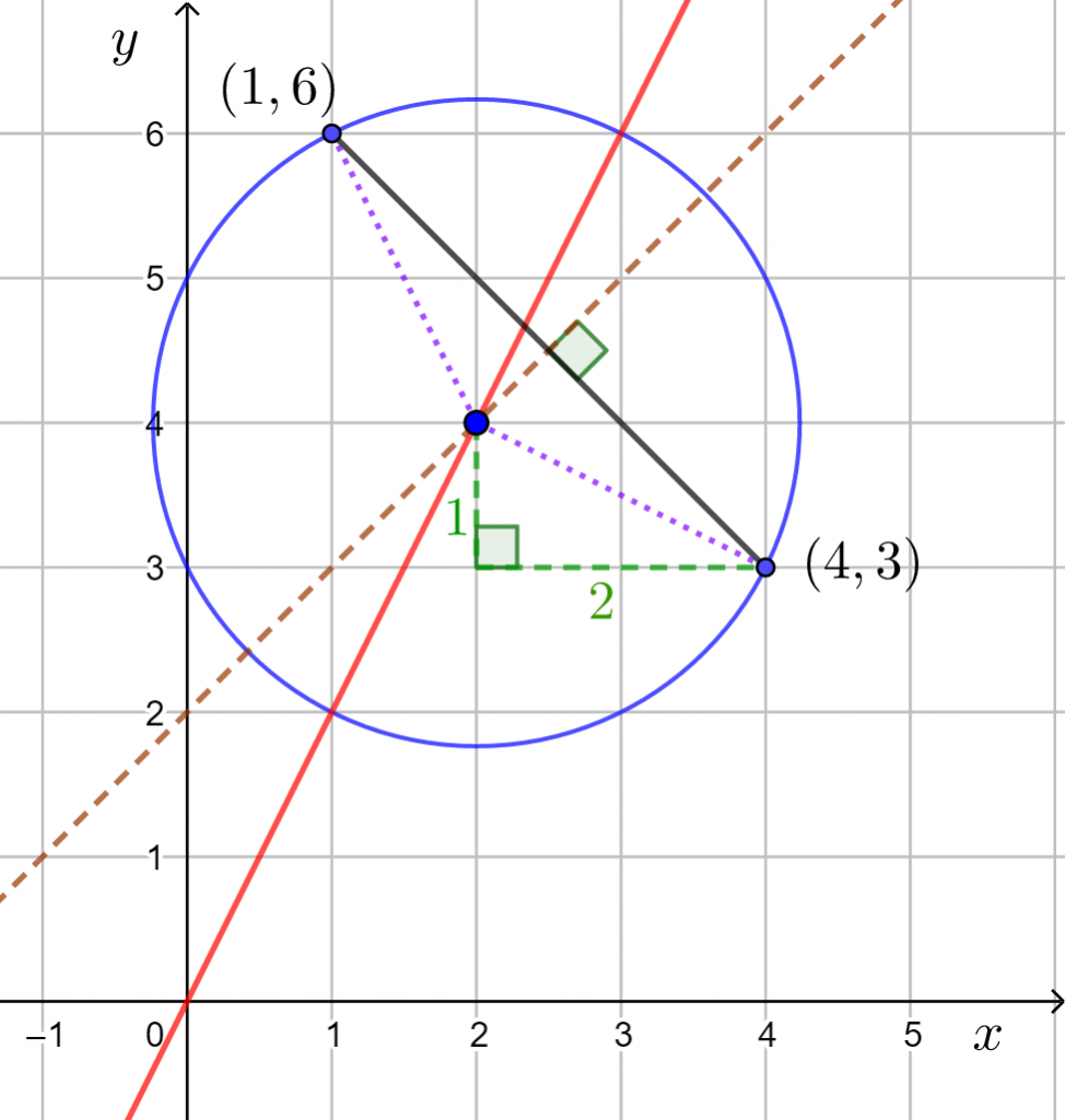 Piiroksen perusteella ympyrän keskipiste näyttäisi olevan pisteessä