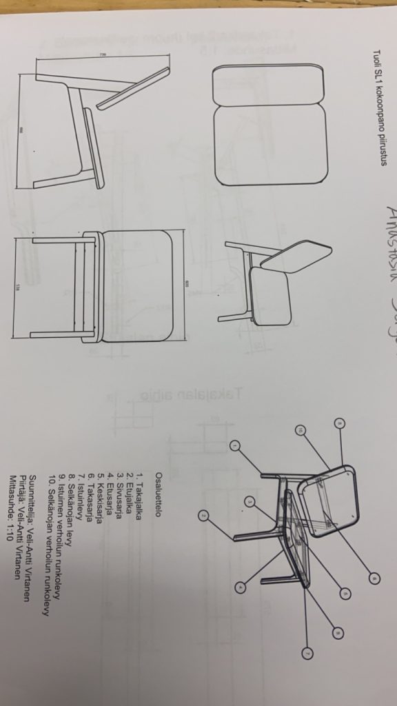 Tehtävänä oli valmistaa lepotuoli annettujen piirustusten mukaan