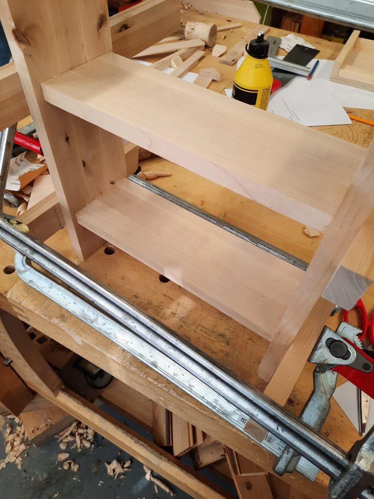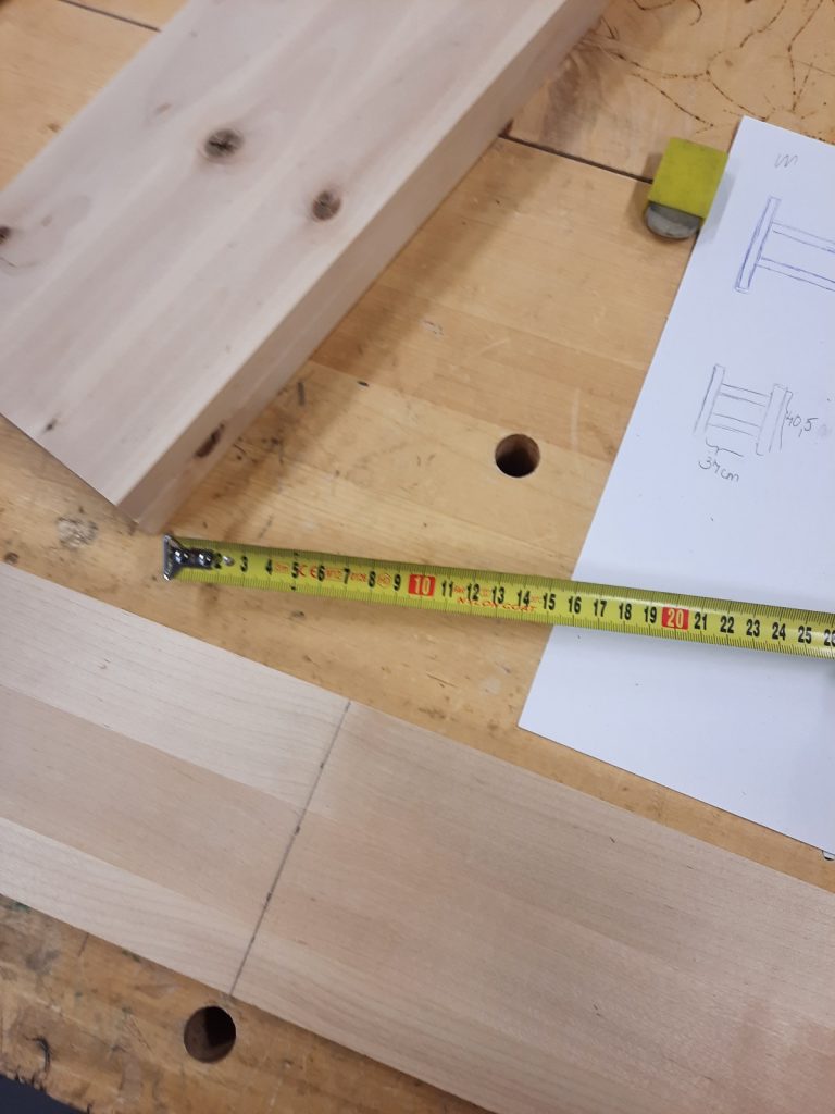 Ensimmäisellä viikolla tutustuimme kaikkiin kolmeen osaamisalaan; puu, metalli ja tekstiili. Meidän ryhmämme aloitti puusta. Saimme eteemme kasan erilaisia puunpalasia yms. joista saimme valmistaa haluamamme esineen; ”härpäkkeen”. Itse halusin tehdä jotain käytännöllistä ja tarpeellista. Tein pienen hyllykön tyttäreni huoneeseen, jossa hän voi säilyttää schleich-hevosiaan.