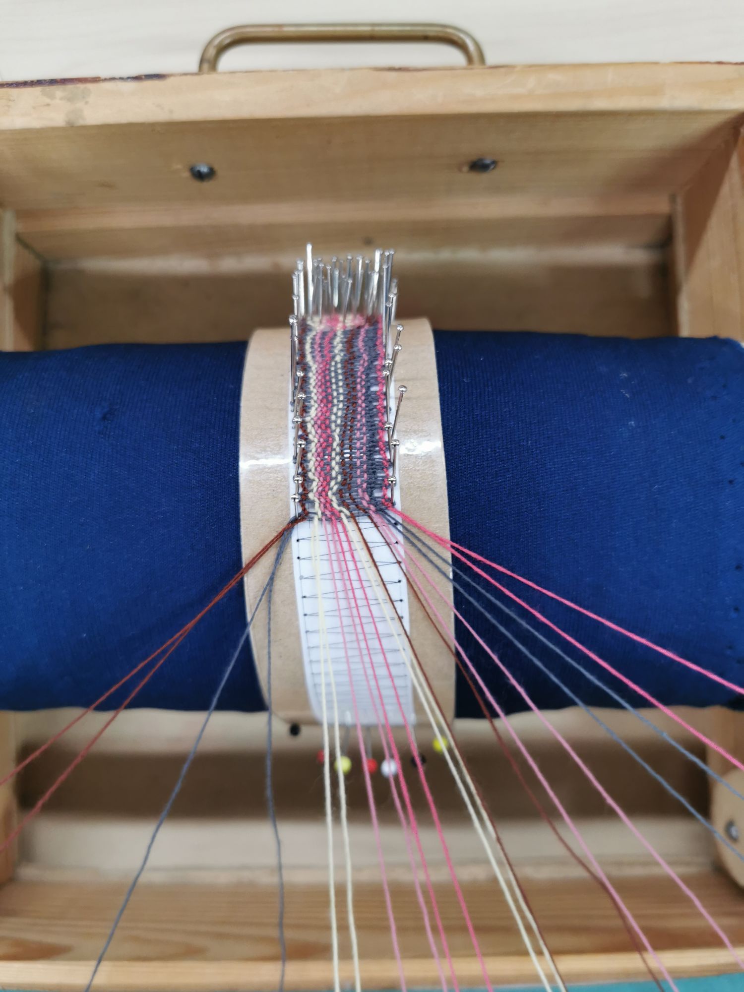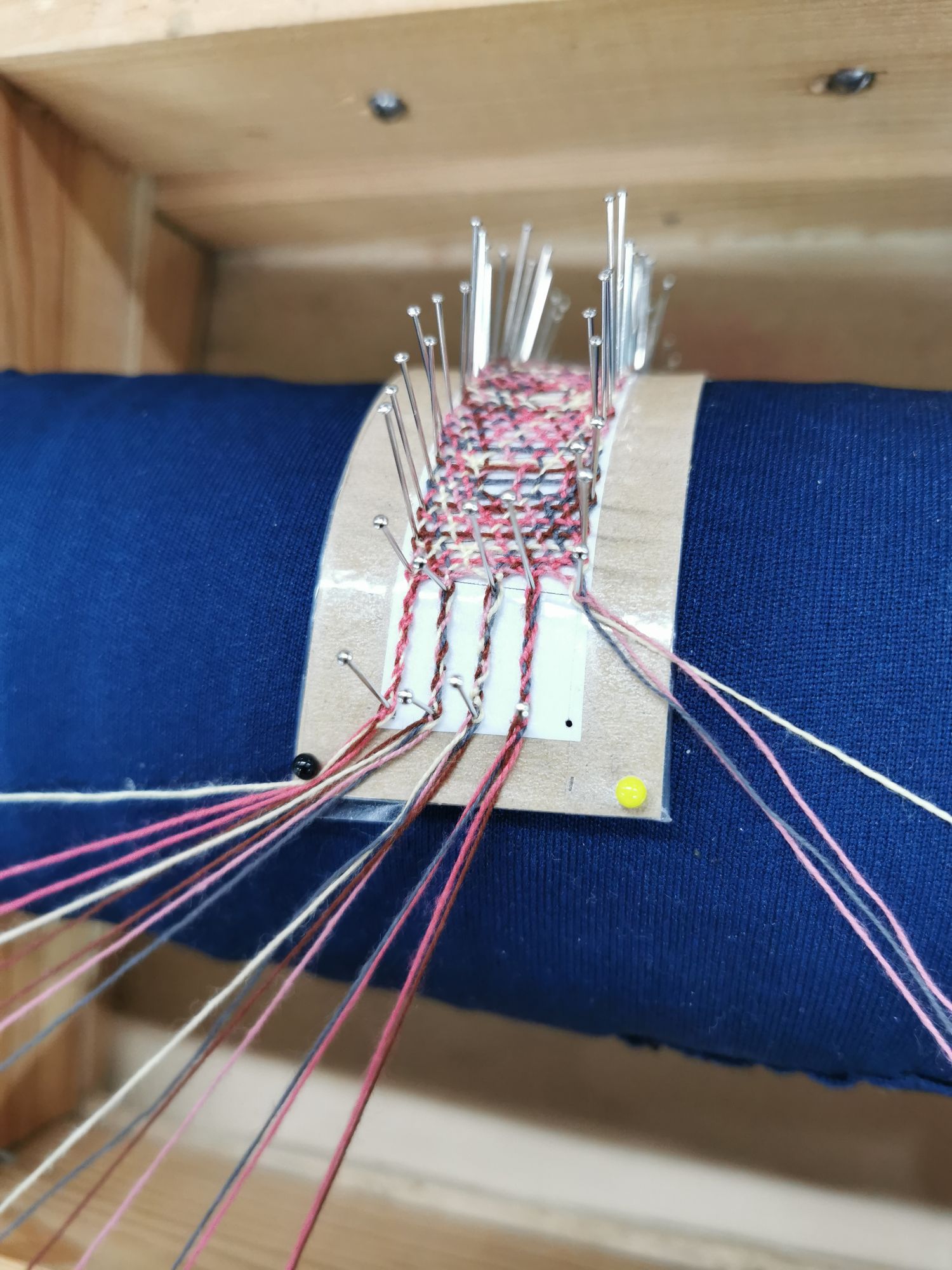 Avokadolla värjäyksessä laitoin aluksi purettamattomat langat liottamattomien kuorten ja kivien kanssa samaan aikaan, koska olin kuullut, että avokado itsessään purettaa langat. Näin netissä paljon kuvia avokadovärjäyksistä, joissa lopputulos on ollut heleän vaaleanpunainen. En kuitenkaan löytänyt reseptiä mistään, joten rupesin vain kokeilemaan. Keitin lientä n. 60 asteessa pari tuntia ja jätin sopan viikonlopun ylitse likoamaan. Väriä ei kuitenkaan ollut irronnut melkein yhtään, joten lisäsin liemeen 15g liotettua alunaa ja pidin liemen n. 80-90 asteessa n. tunnin. Tämän jälkeen huuhtelin ja kuivatin langat. Lopputulos oli vaaleanpunaisen sijaan enemmänkin beesi, mutta hiukan punertavaa sävyäkin voi siitä huomata.