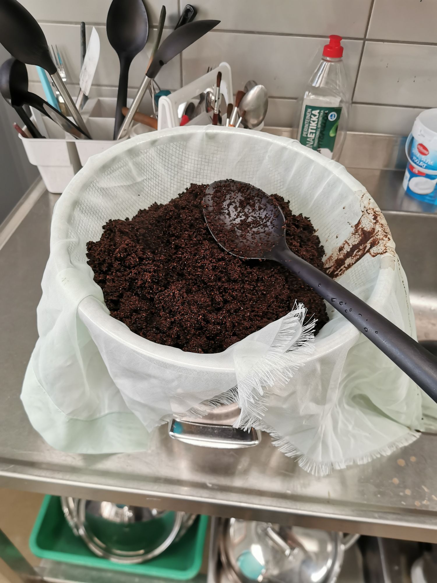 Kuivatin kesän aikana yhteensä puoli kiloa käytettyjä kahvinpuruja. Noin puolet oli tummapaahtoista kahvia ja puolet vähän vaaleapaahtoisempaa.