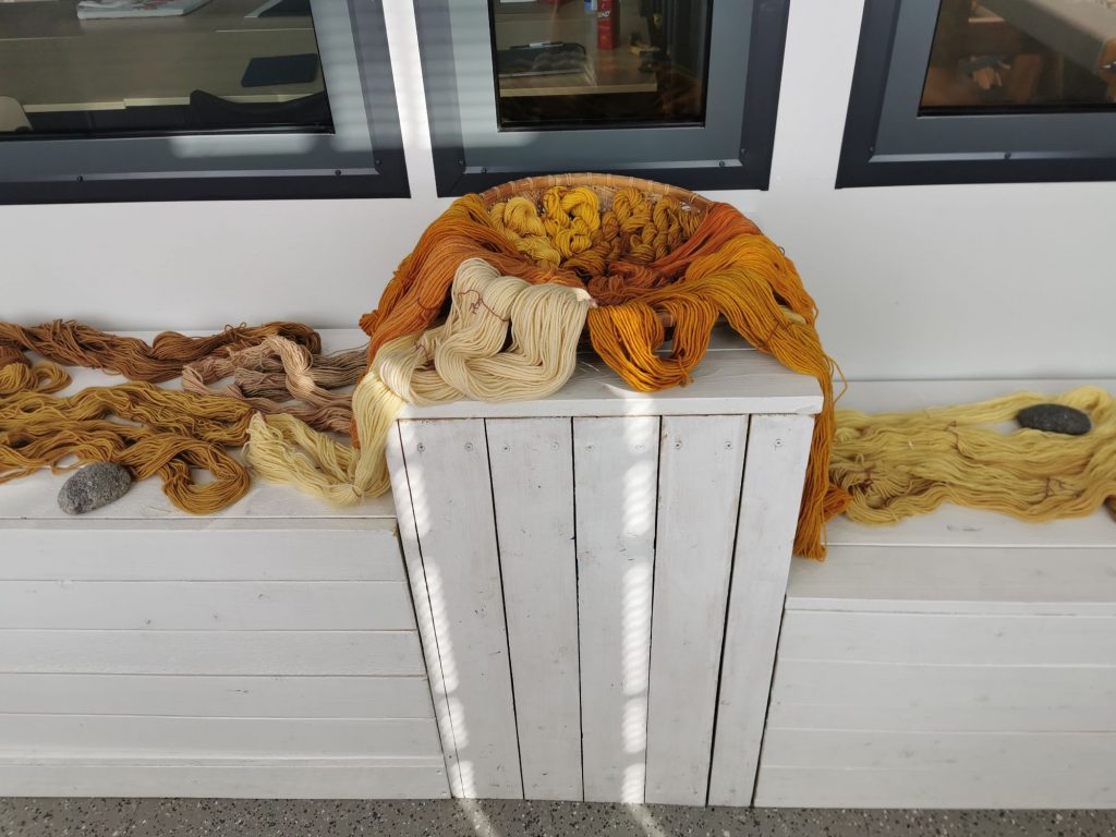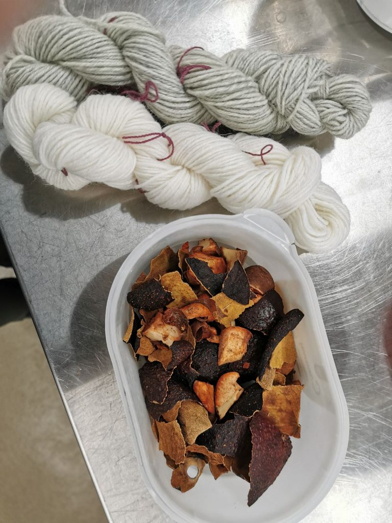 Minulla oli näiden jälkeen vielä aikaa värjätä lisää lankoja, joten päätin tehdä vielä keltasipulin kuorista sekä avokadon kuorista ja kivistä väriliemet.