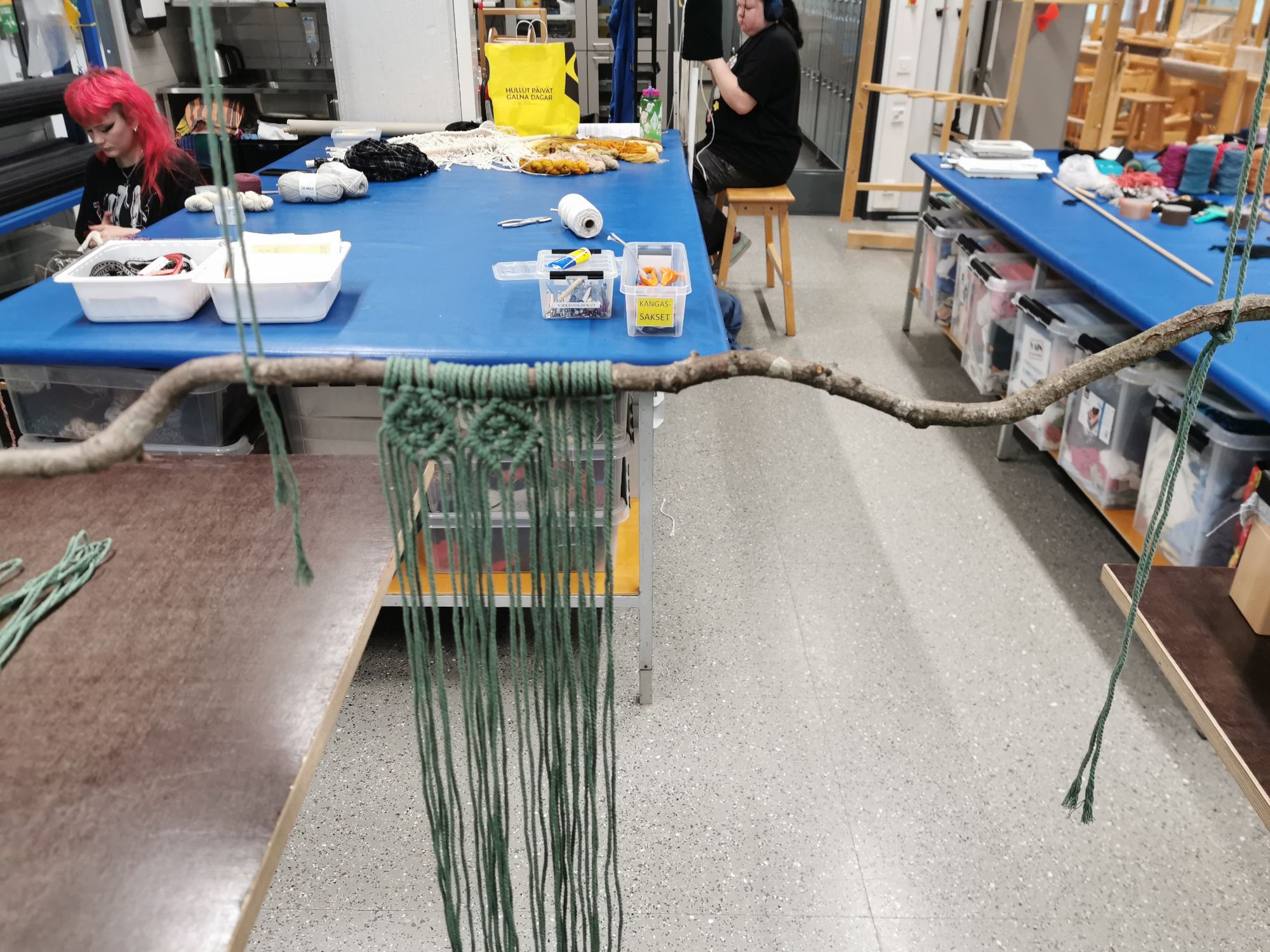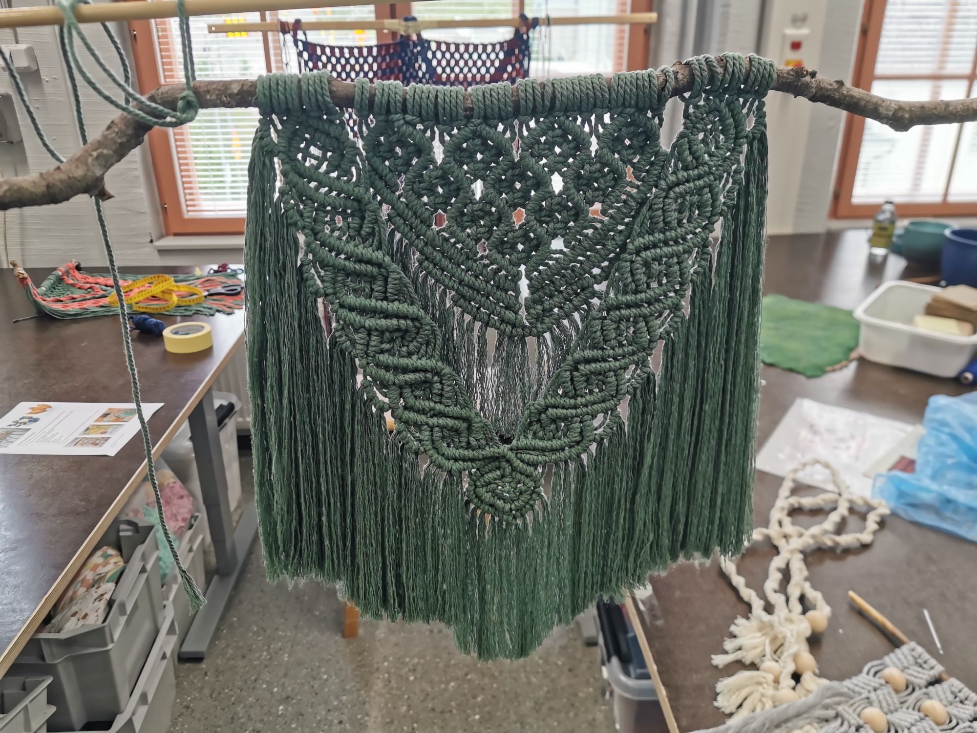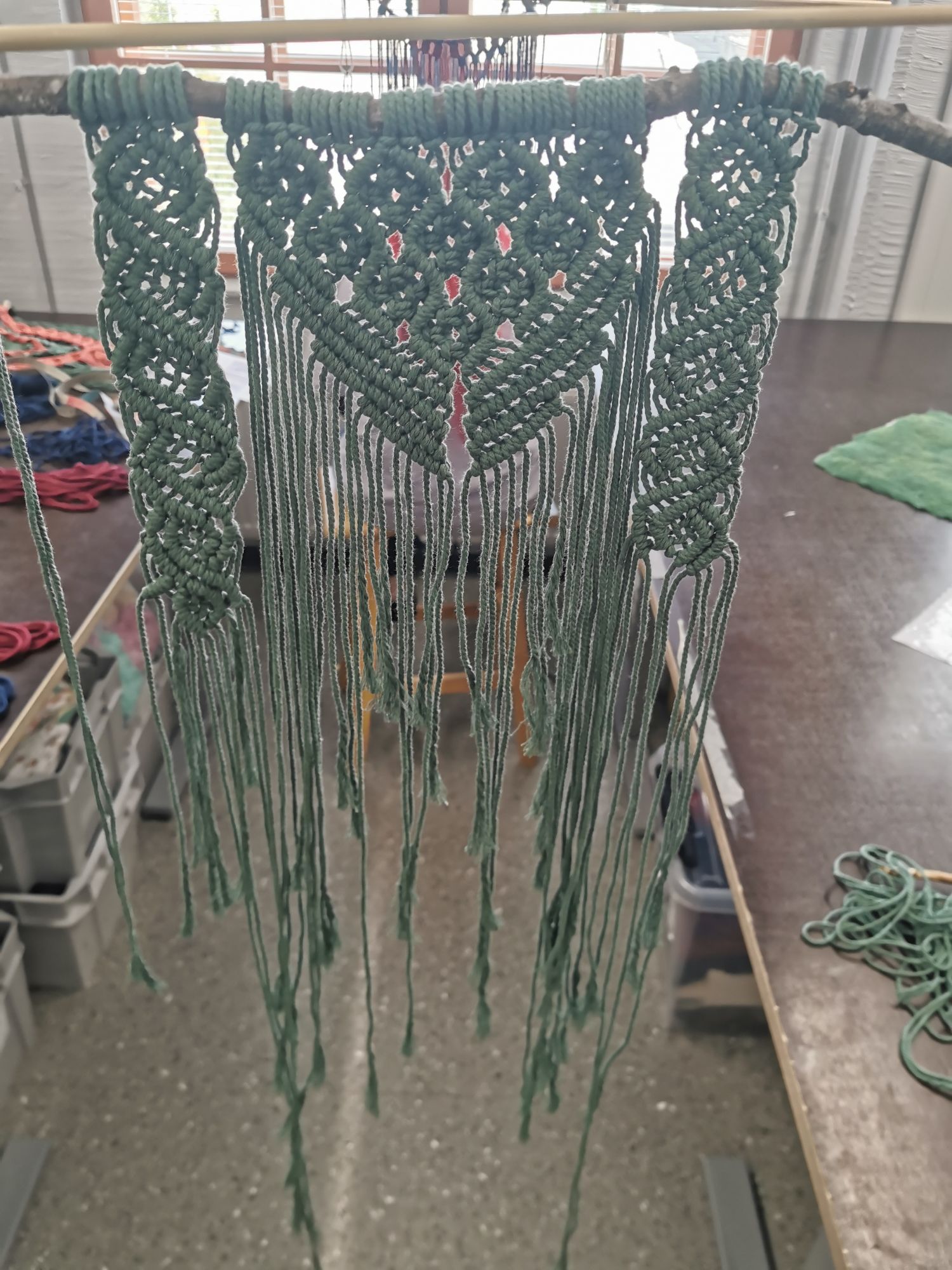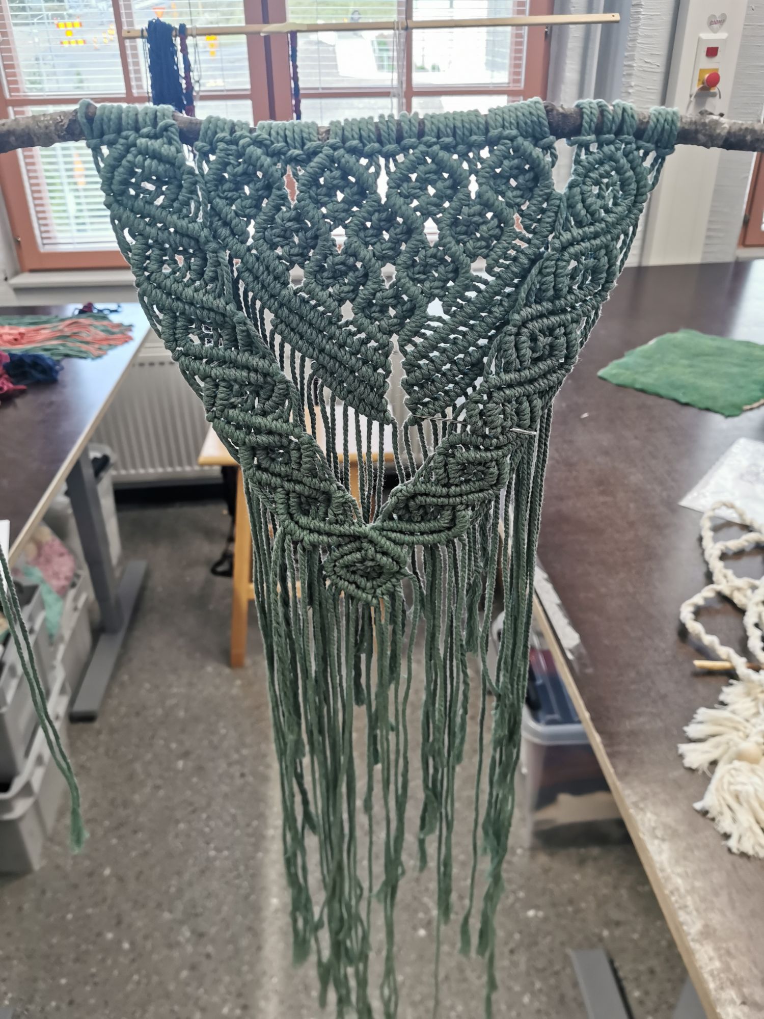 Tein viikon mittaisella makramee-kurssilla 2 verhonpidikettä sekä 2 seinätekstiiliä, pienemmän ja vähän isomman.