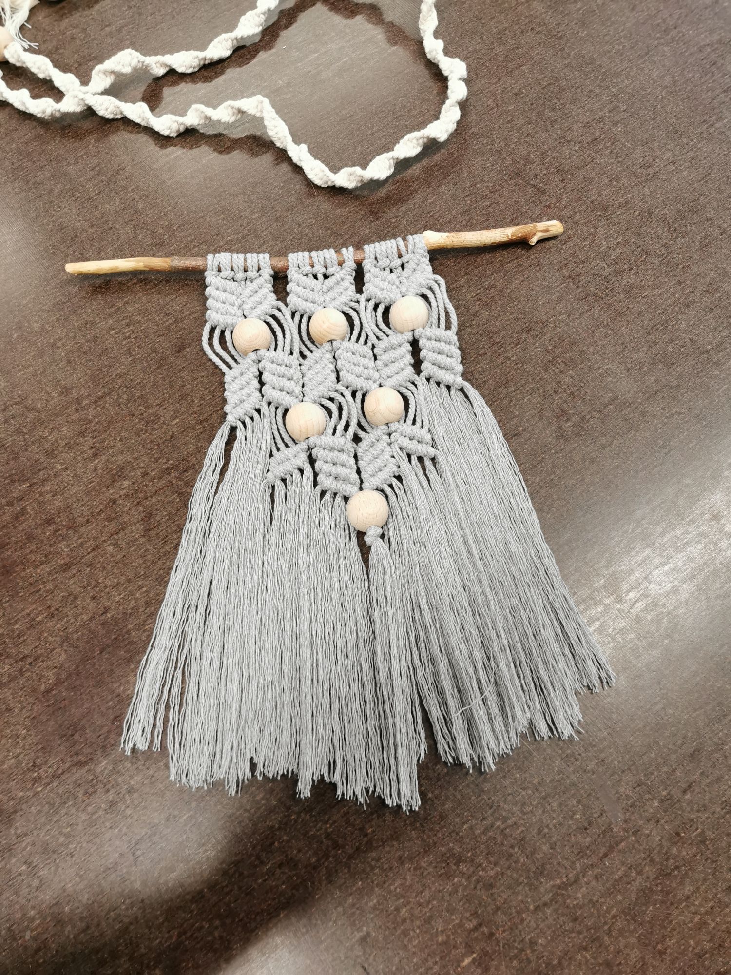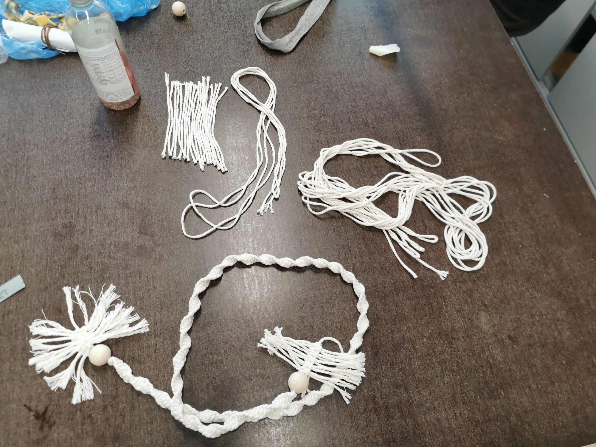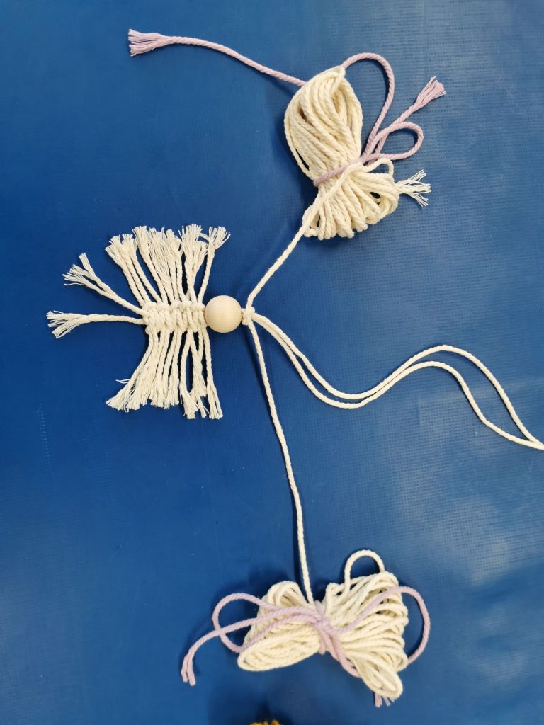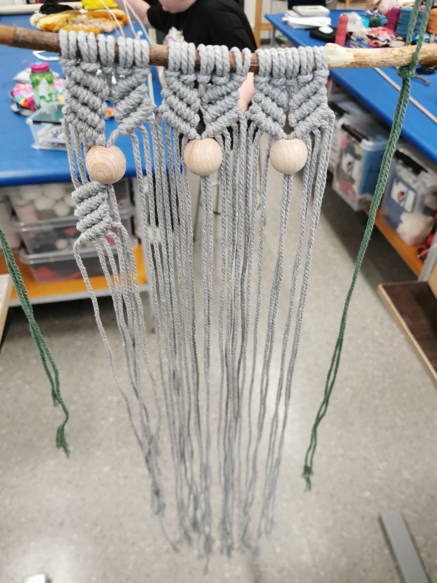 Tein viikon mittaisella makramee-kurssilla 2 verhonpidikettä sekä 2 seinätekstiiliä, pienemmän ja vähän isomman.