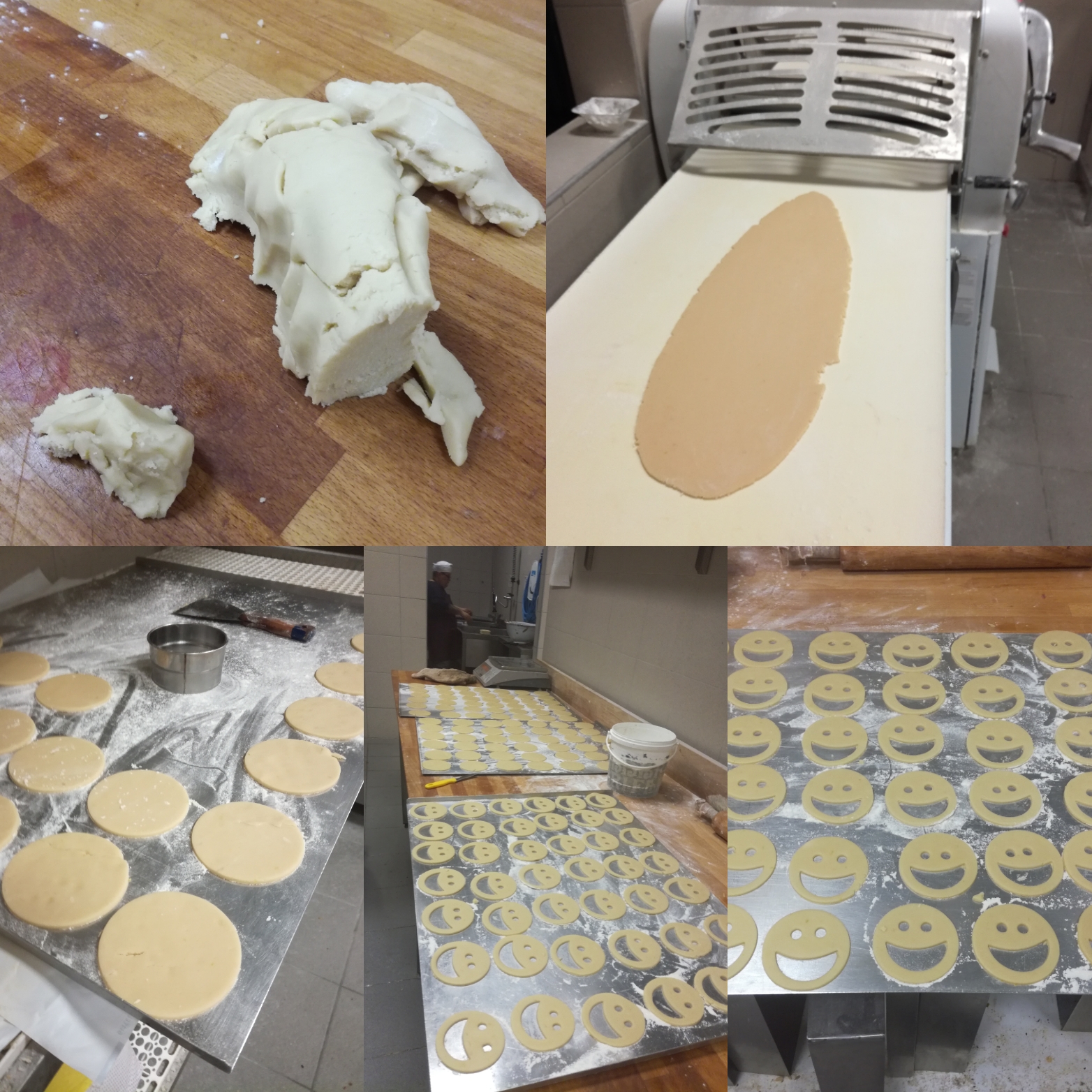 Sit pääsin käyttää kaulauskonetta . Keksejä tekeen..massa oli jo valmiina joten ei tarvinnut kun kaulata,painella muoto ja nostella pellille. Noi Smile keksit on hauskoja