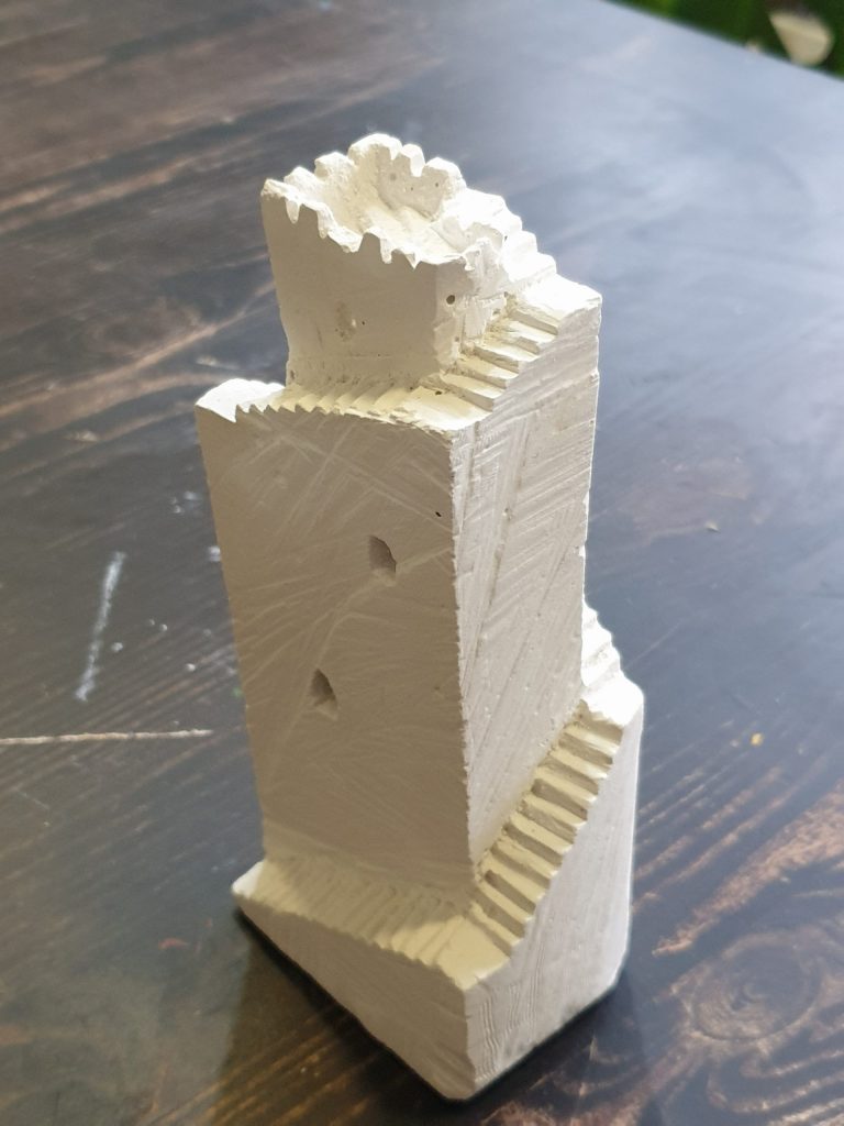 1.11. Veistelin kotioloissa kipisityön, jonka aiheeksi oli talo. veistely oli kivaa, mutta varsin sotkuista puuhaa. Työkaluina käytin