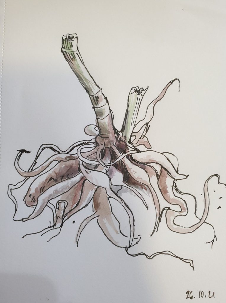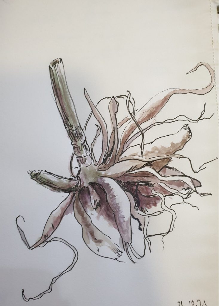 26.10.piirsimme ”eläviä malleja”. Olin valkannut jorinin juurakon malliksi vesiväritöihin. Ennen en ole maalannut vesiväreillä vastaavalla tavalla. Tämä oli tosi hauskaa.