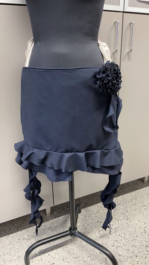 Hameesta tuli juuri sellainen mitä asiakas toivoi ja mitä itsekin odotin. Hame oli haastava mutta olisi toki voinut olla hieman haastavampi, mutta kuitenkin opin uutta hametta tehdessä. Kivointa hameessa oli mielestäni kukka, sitä oli kiva tehdä ja lopputulos oli hyvä. Haastavinta hameessa oli varmaan ompelussa vetoketju niin että se näyttää hyvältä.