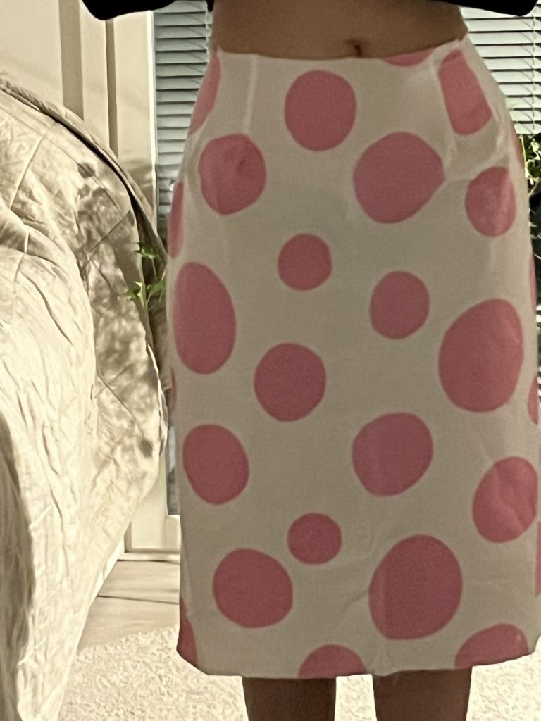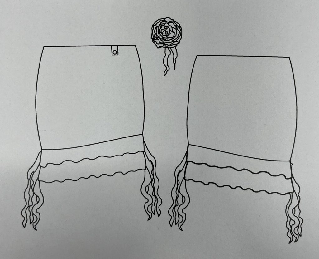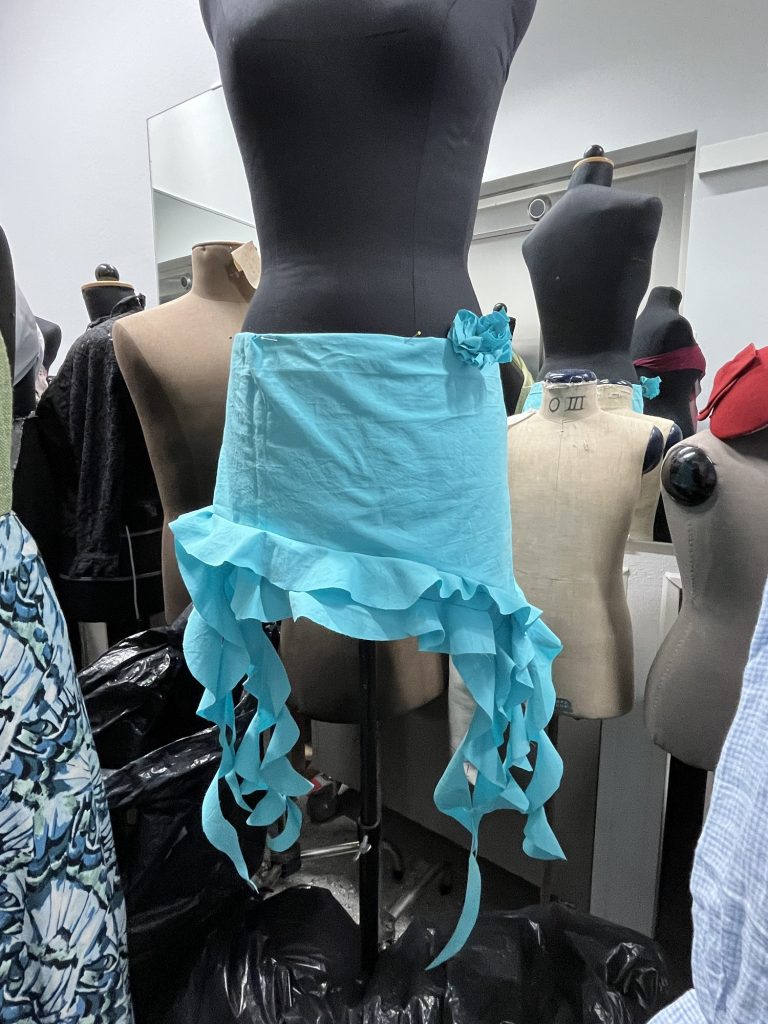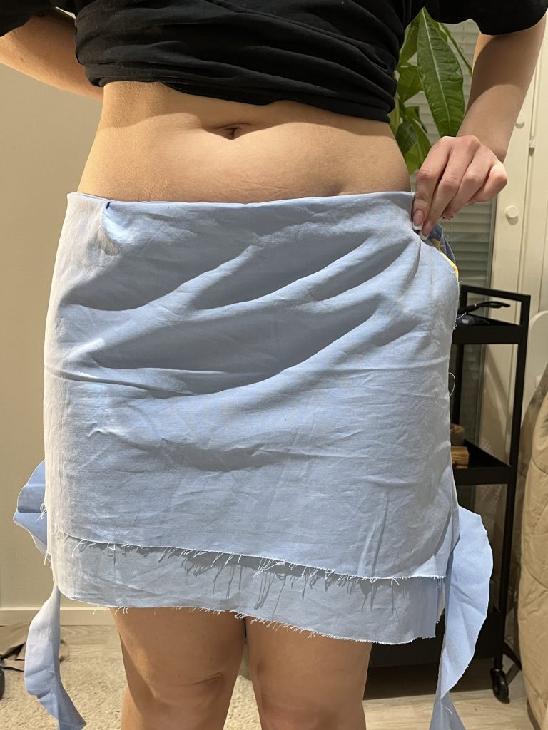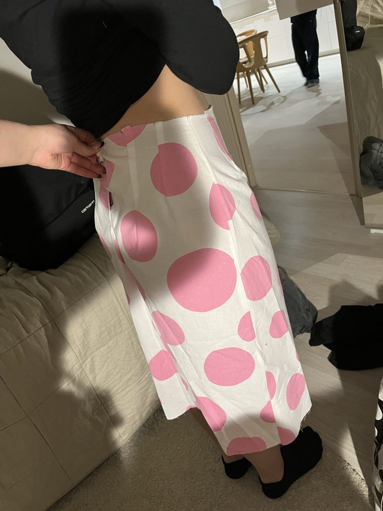 Hameesta tehty proto mutta ei vielä oikeilla mitoilla vaan että miltä hame suunnilleen tulisi näyttämään.