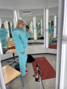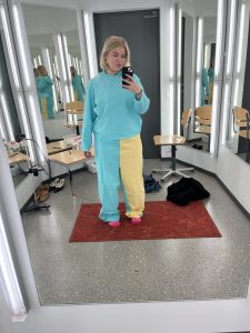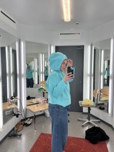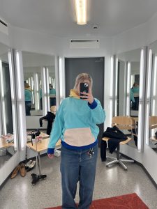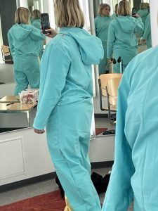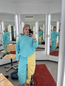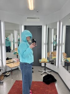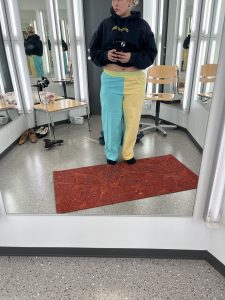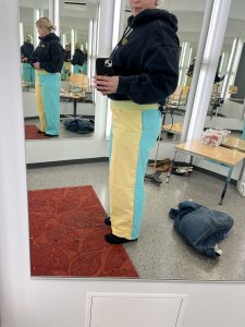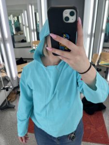 Kun housuista ja hupparista protot olivat hyvin istuvat ja mieleiseni, sitten aloin muokkaamaan yksityiskohtia esimerkiksi huppua