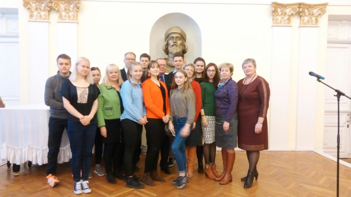 - Paikalliset opiskelijat lausumassa runoja kaupungintalolla