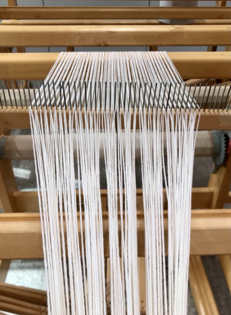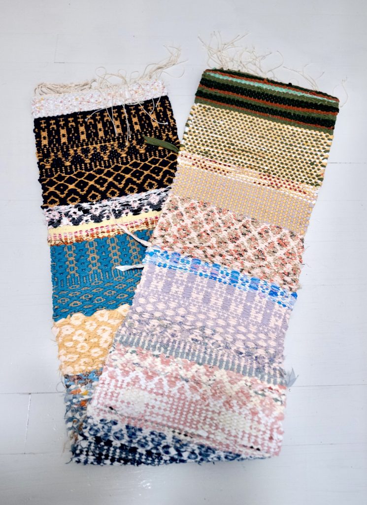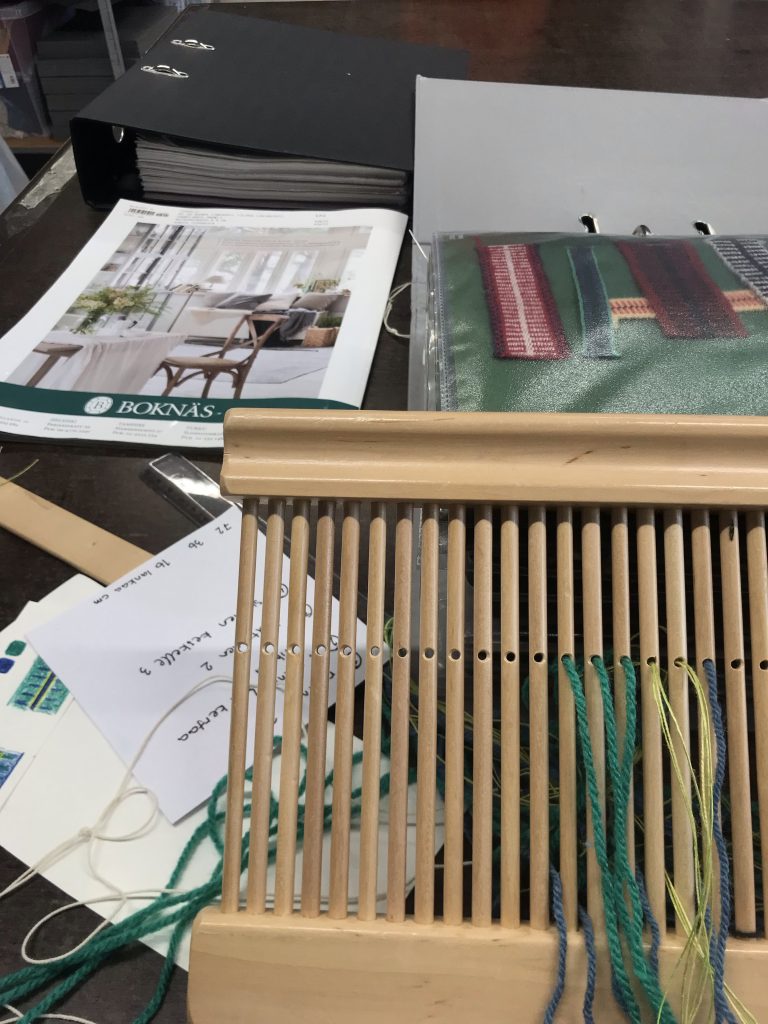 Kudonnan peruskurssilla harjoiteltiin kangaspuihin lankojen laittoa ja sukkulan kuljettamista viriössä sekä erilaisten kuvioiden tekemistä.