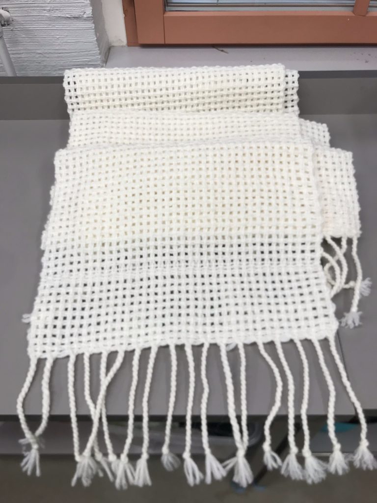 Kangaspuilla valmistin kaulahuivin. Huivista tuli leveä ja pitkä.