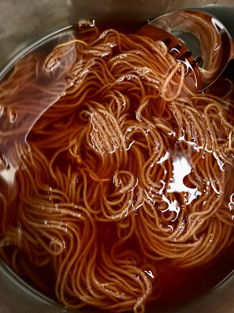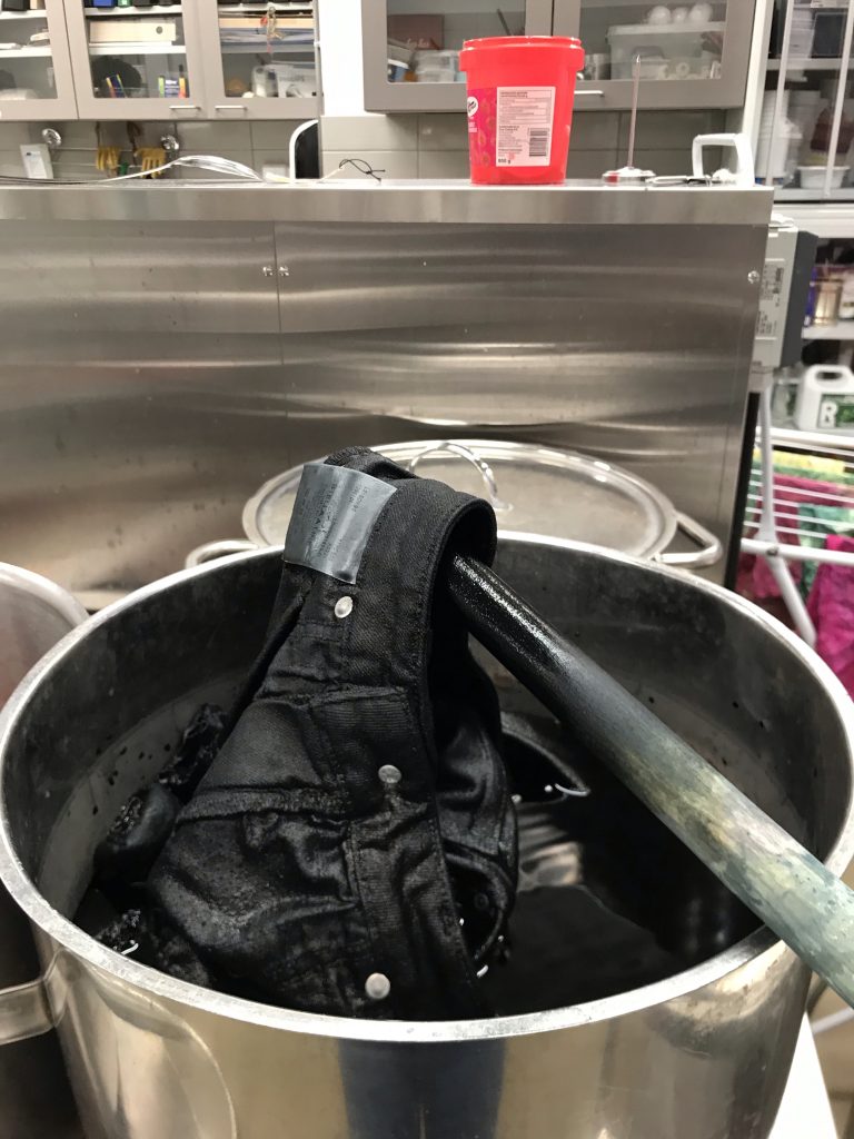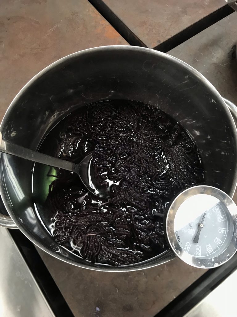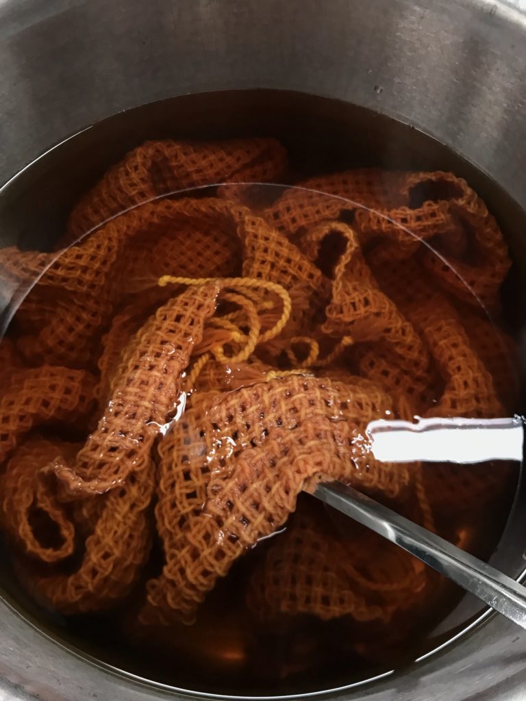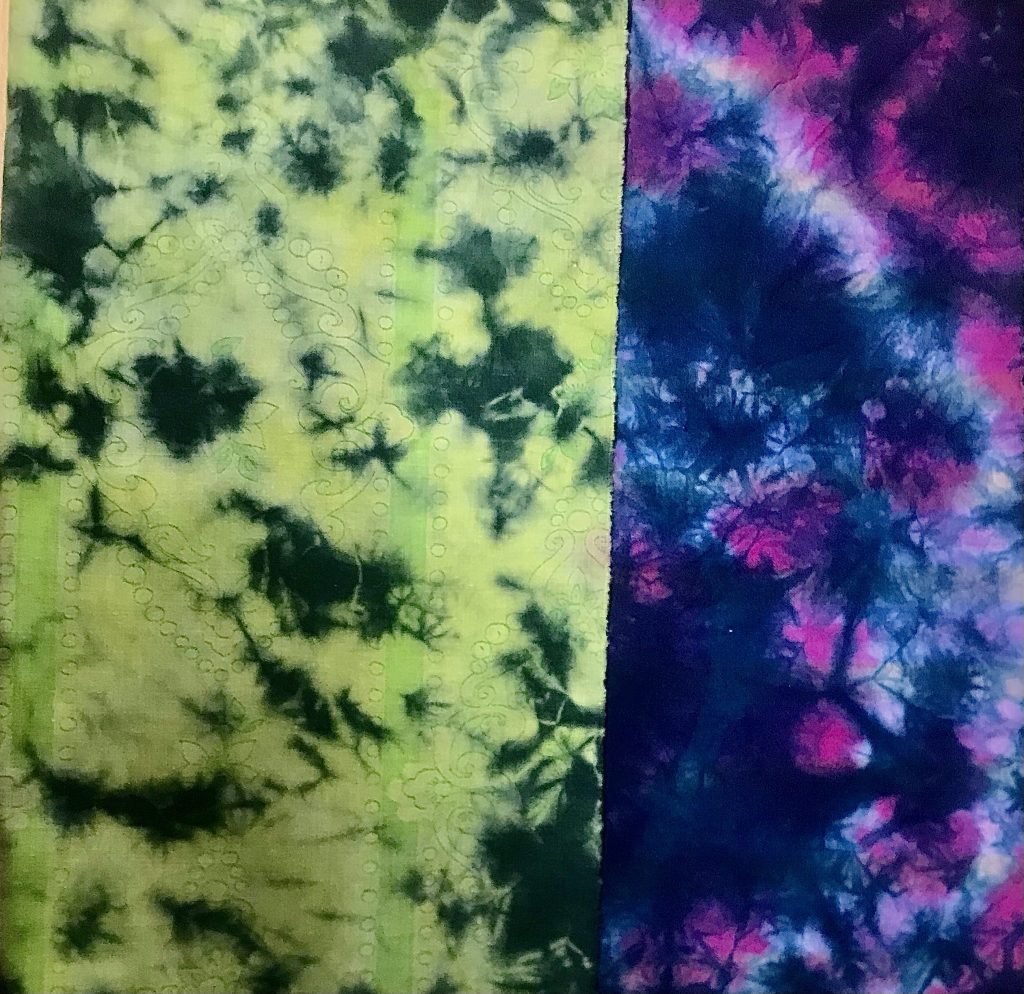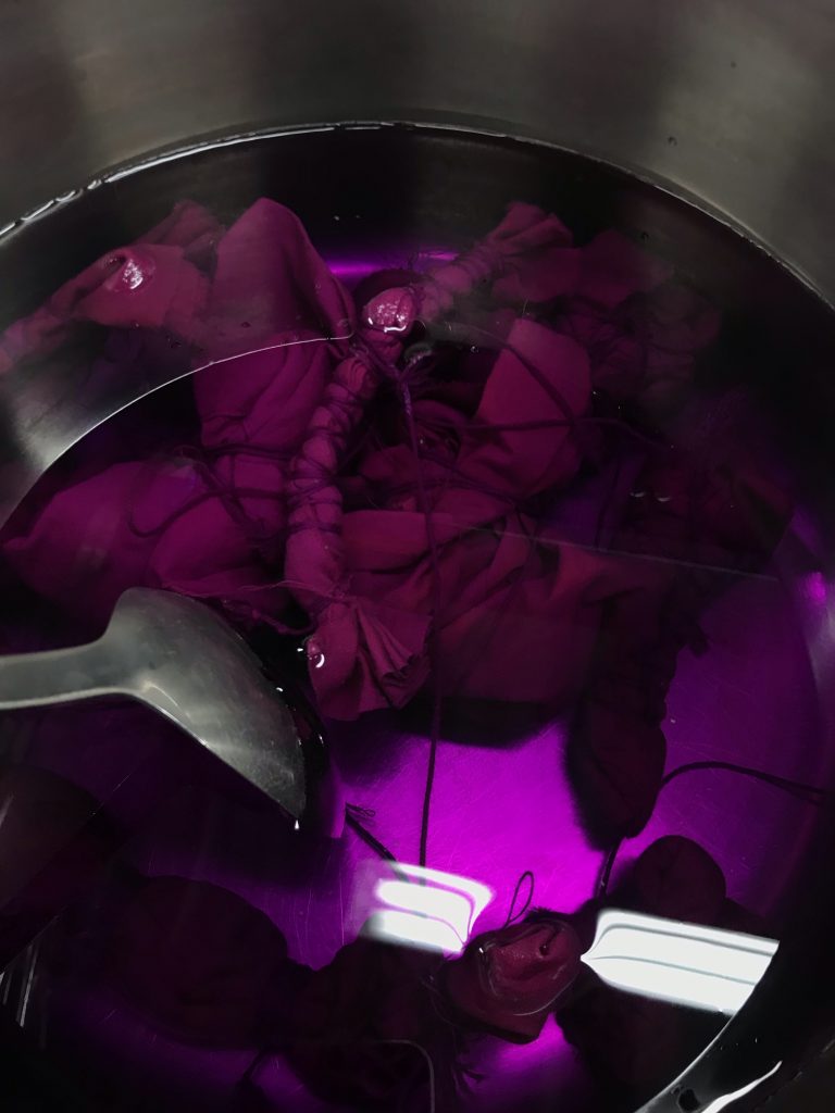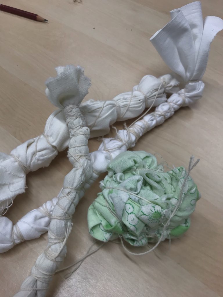 Kurssilla ommeltiin kankaanvärjäyksen kurssilla värjättyjä kankaita. Ompelin niistä erikokoisia pussukoita. Pussukoiden lisäksi ompelin tyynyliinan, jonka kankaan painoin itse kankaanpainannan kurssilla.