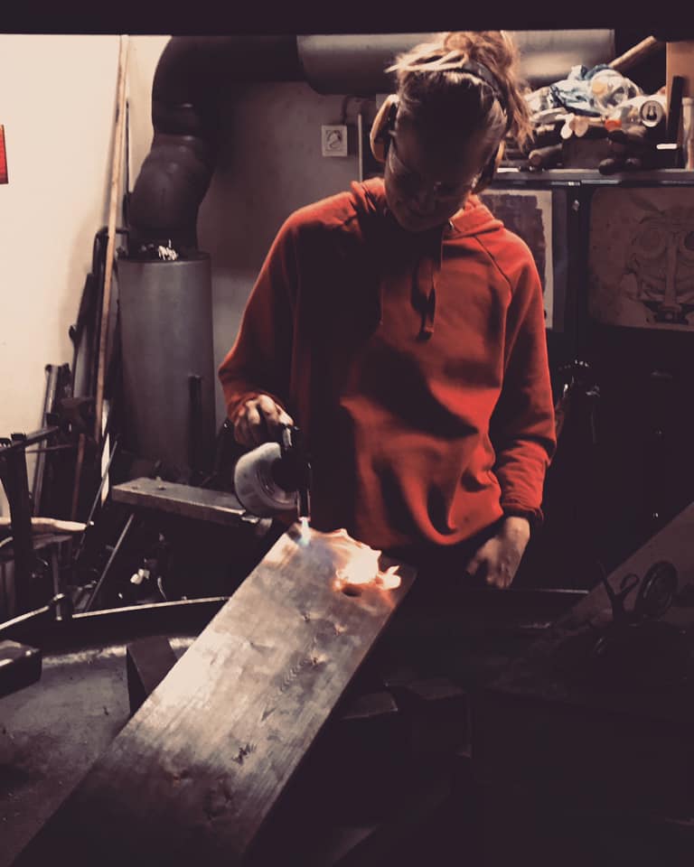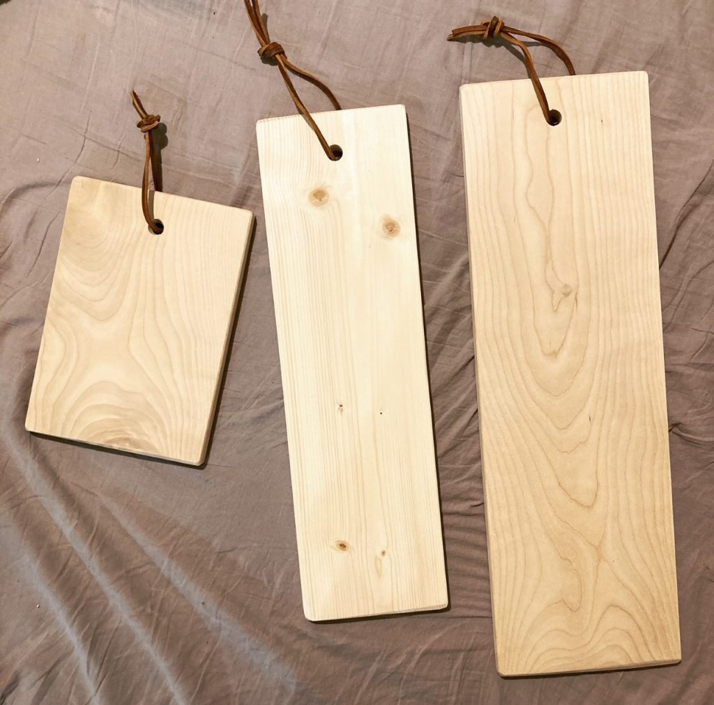 Olen käyttänyt hiillyttämistekniikkaa sekä mäntyisten hyllylevyjen että sushilautojen pintakäsittelyyn. Työt viimeistelin pellavaöljyllä.
