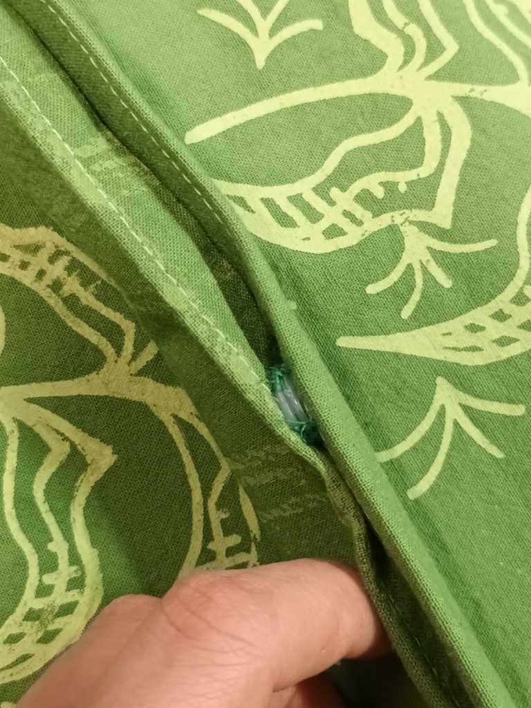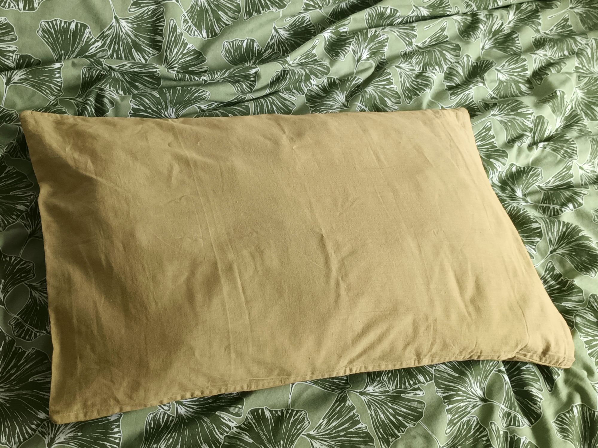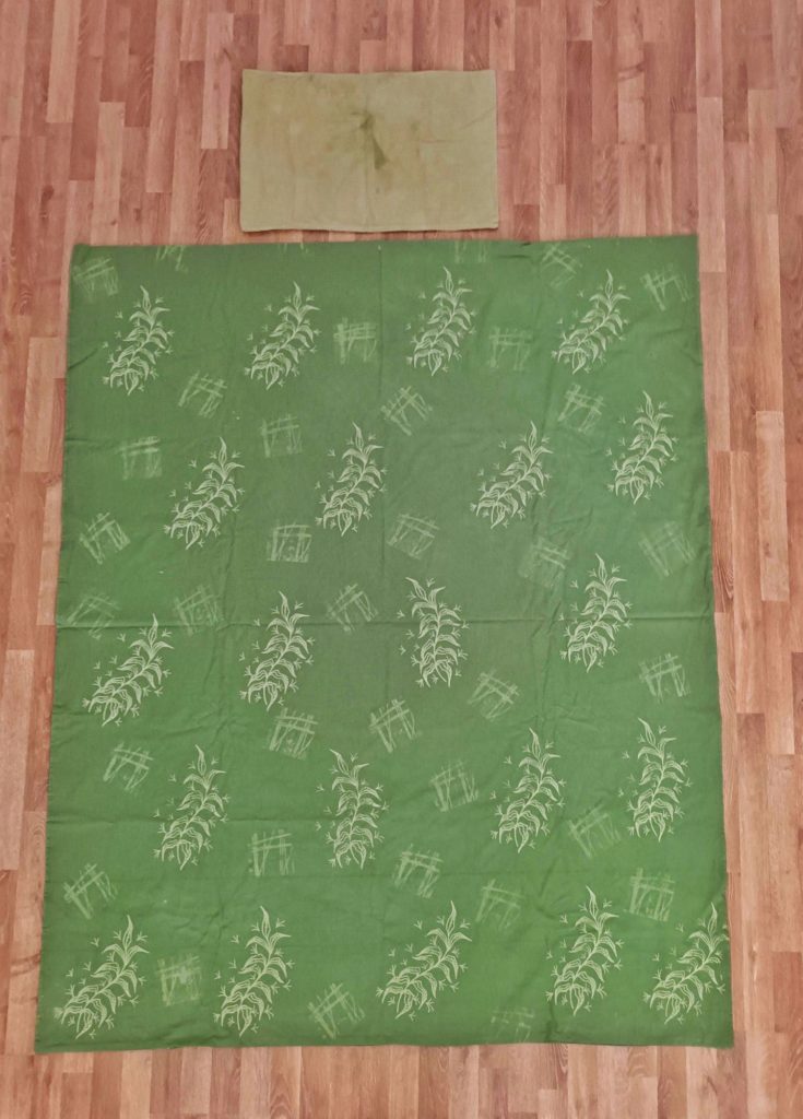 Käytin tyynyliinaan kangasta jota käytin testivärjäyksessä kun loin värireseptiä pussilakanalle.