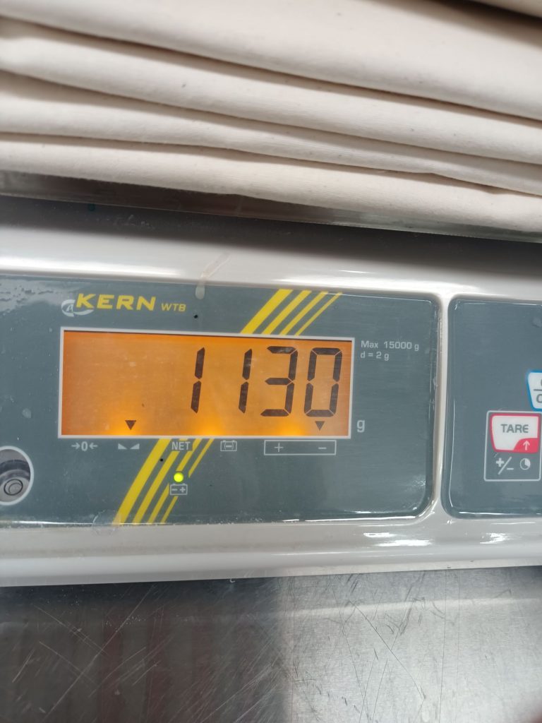 Punnitsin kankaan myöhemmin tapahtuvaa värjäystä varten, kangas painoi 1130g