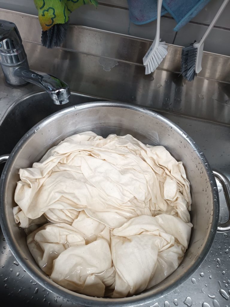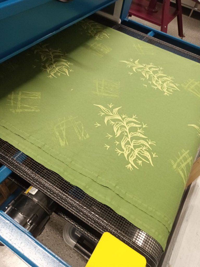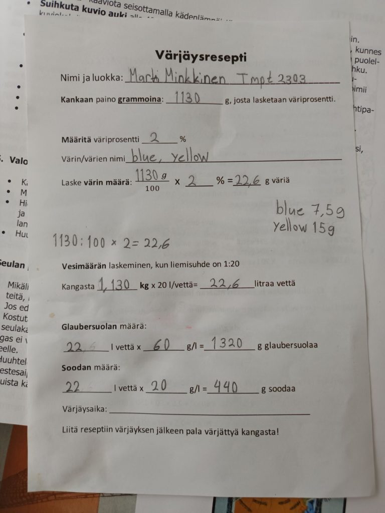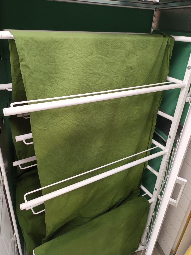 Värjäyksen jälkeen laitoin kankaan kuivumaan kuivauskaappiin josta kävin hakemassa sen seuraavana päivänä.