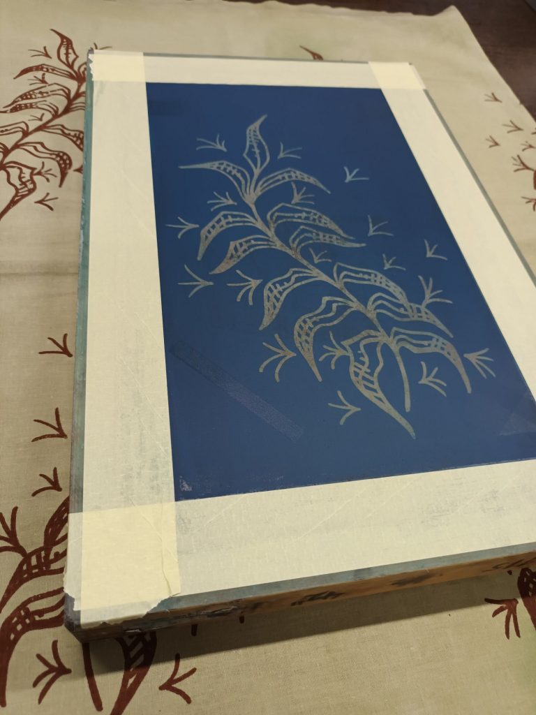 Säilytin valmiin seulan suojattuna auringonvalolta, koska se kovettaa emulsiopinnan, jonka seurauksena seulan puhdistus voi olla erittäin hankalaa kovettuneen emulsion takia.