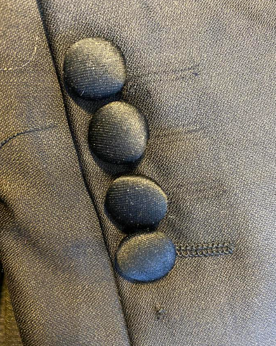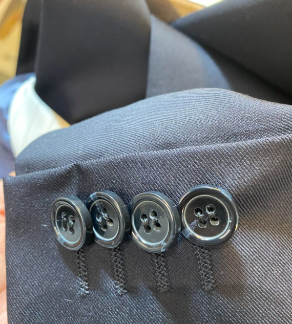 Iinalla työskentelyyn liittyy paljon nappien käsittelyä. Niitä päällystetään ja ommellaan käsin eri paikkoihin, kuten takkien ranteisiin, aukkoihin ja takakohtiin. Iinalla on nappikone, ja Iinalla oli muovipohjia ja metalliosia nappia varten. Nappien päällystämisen koko on aina leikattu 5 sentin kolikon kokoiseksi. Meille tuli iso tilaus, jossa piti tehdä yli 100 nappia kolmesta eri kankaasta. Minä leikkasin 200 nappia ja päällystin 100 nappia. Se oli kyllä aikamoinen kokemus!