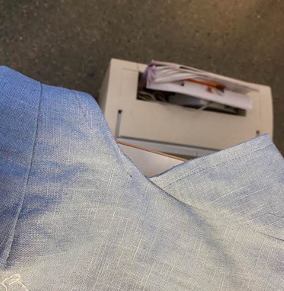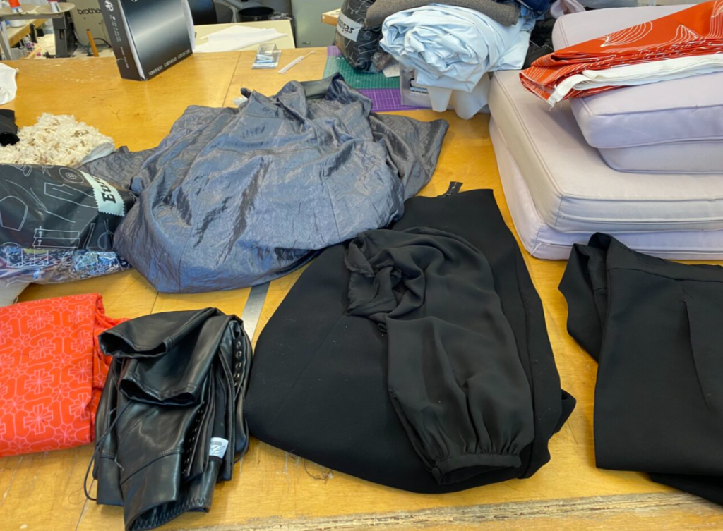 Kun saavuin ensimmäistä kertaa Iinalle. Minulle annettiin tehtäväksi purkata takin vuoria irti. Iinalla purittiin paljon vaatteita ja kaikenlaisia osia. Esim. jos purataan organza kankaasta niin sen kanssa pitää olla varovainen. Ja joissain tikissä on erityisiä tapoja purata. Esim. jos purkaa saumurin tikkejä helpointa on leikata sinistä ja vihreää kohtaa.