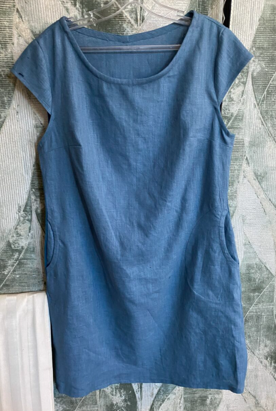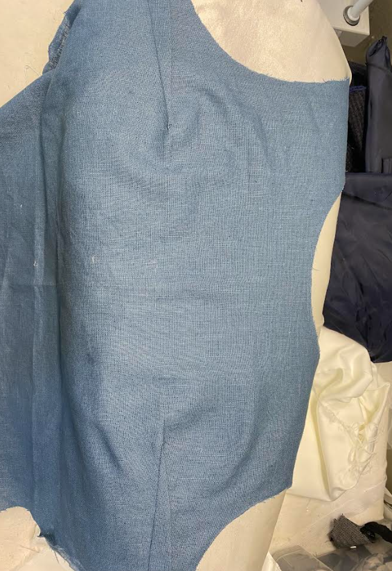 Materiaali: sininen pellava ja college kangas.