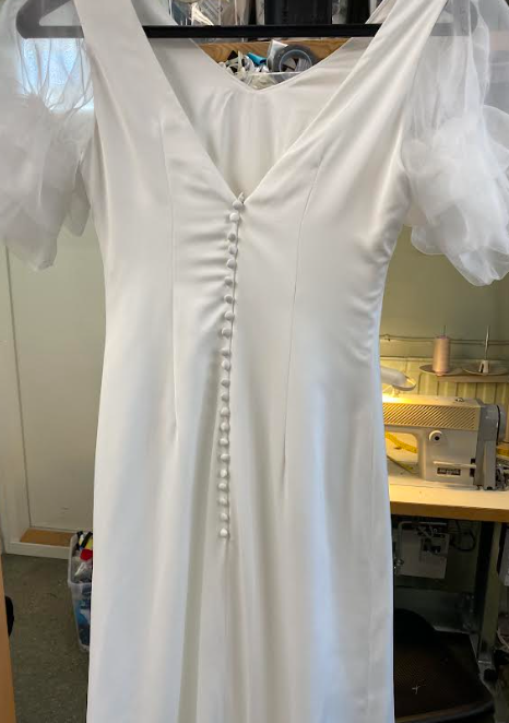 Olen auttanut paljon myös mekkojen huolittelussa saumurikonella. Joskus olen vahingossa leikannut liikaa pois helmasta, mutta onneksi olemme aina saaneet lopputuloksen hyvin tehtyä.