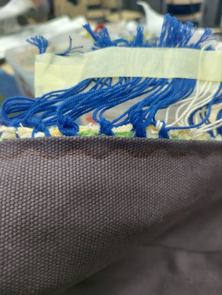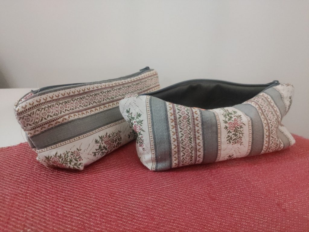 Toinen tiiliskivipussukka, joka oli tehty verhoilukankaasta: