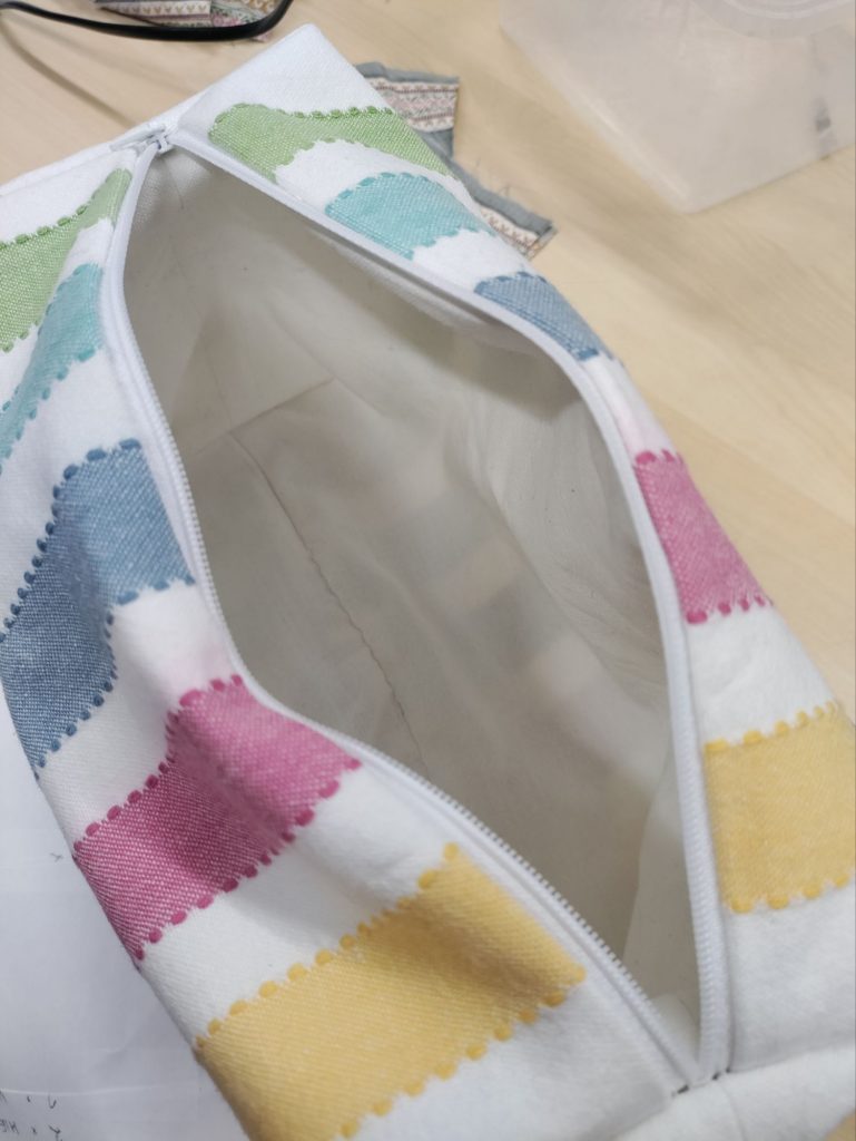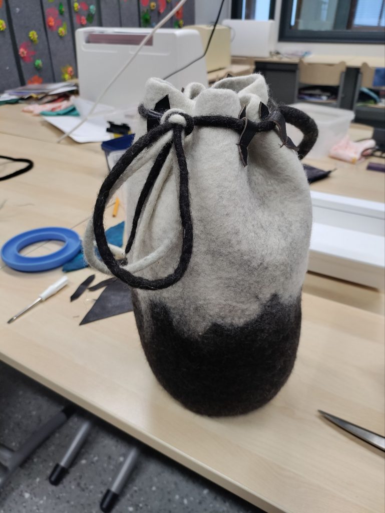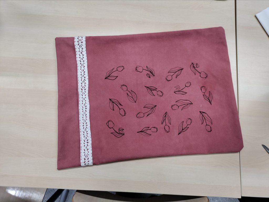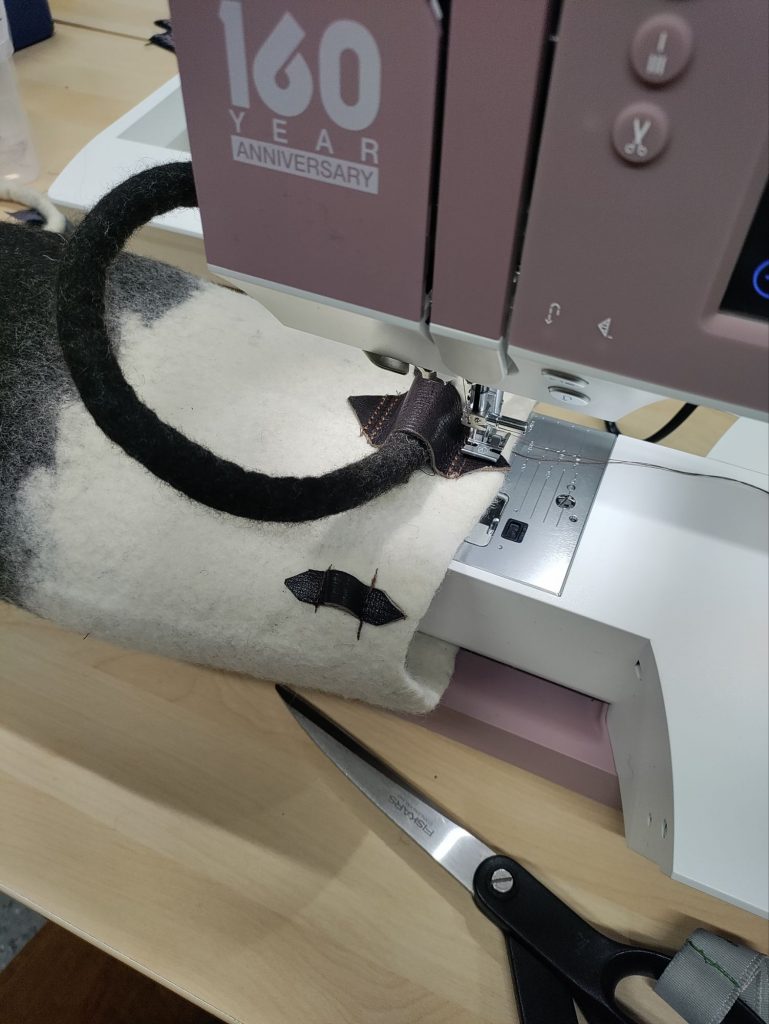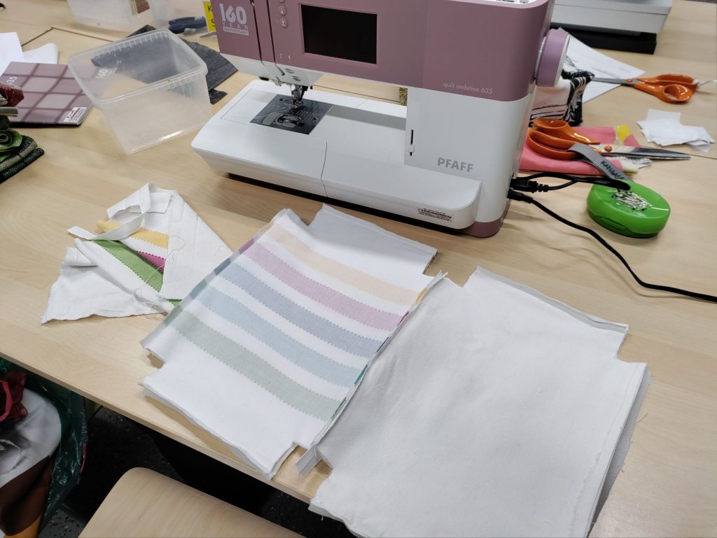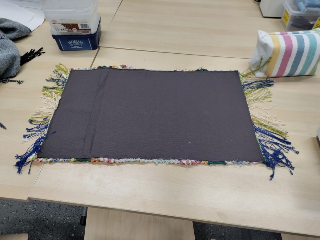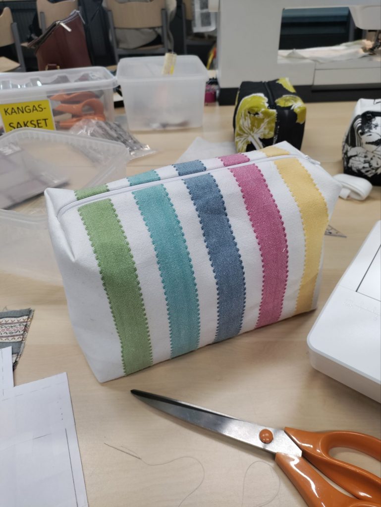 Ompelukurssilla opettelimme ompelemaan perus tiiliskivipussukoita, kynäpenaaleja ja tyynynpäällisiä. Opettelin myös myöhemmin kiinnittämään sirkkoja (metallirenkaita) huopaan.