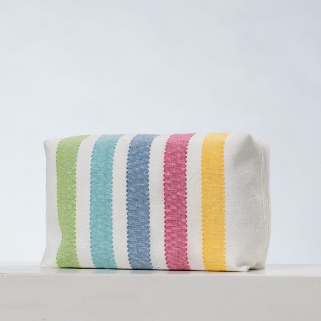 Vanhasta keittiöpyyhkeestä tehty isompi tiiliskivipussukka: