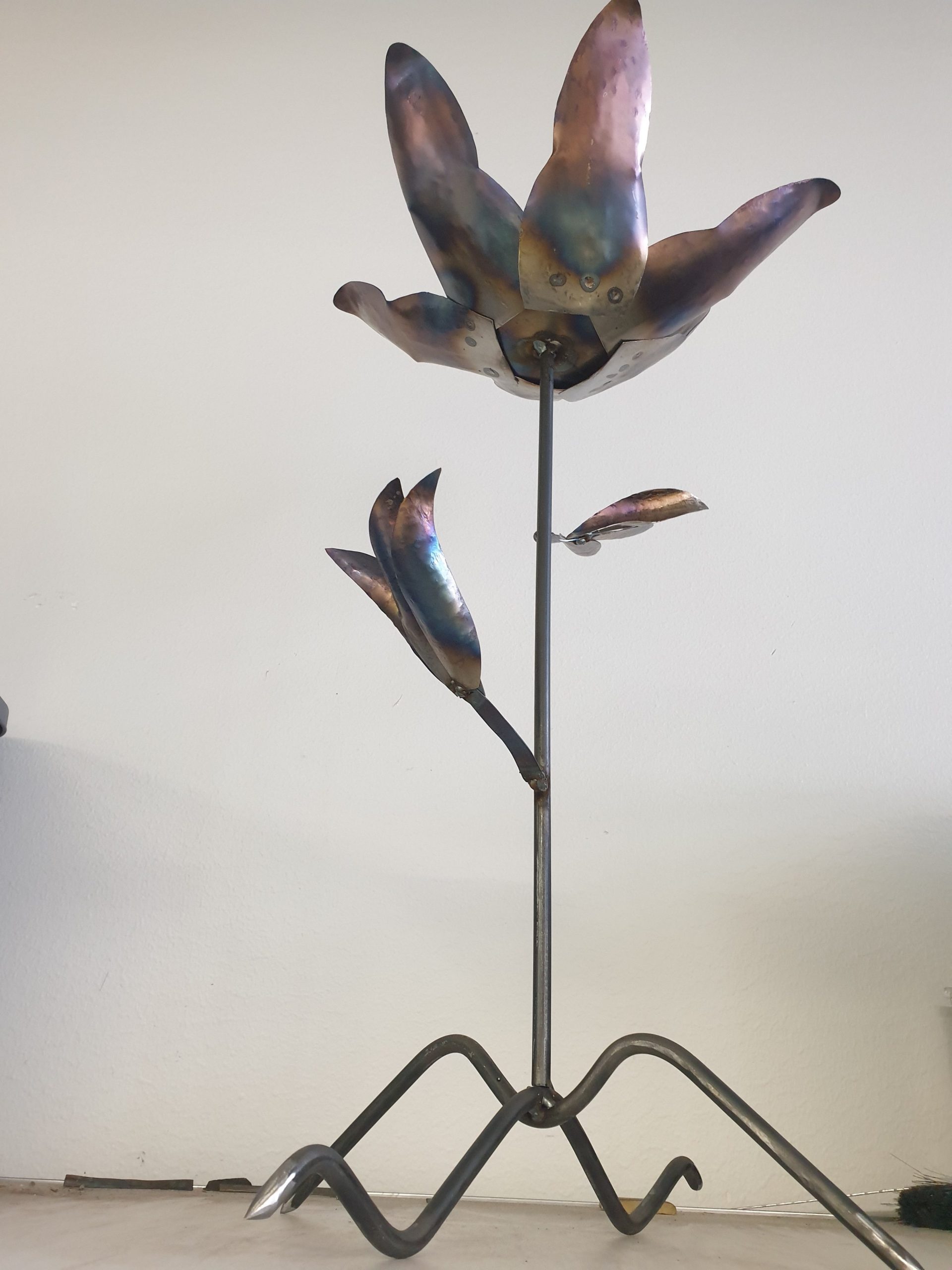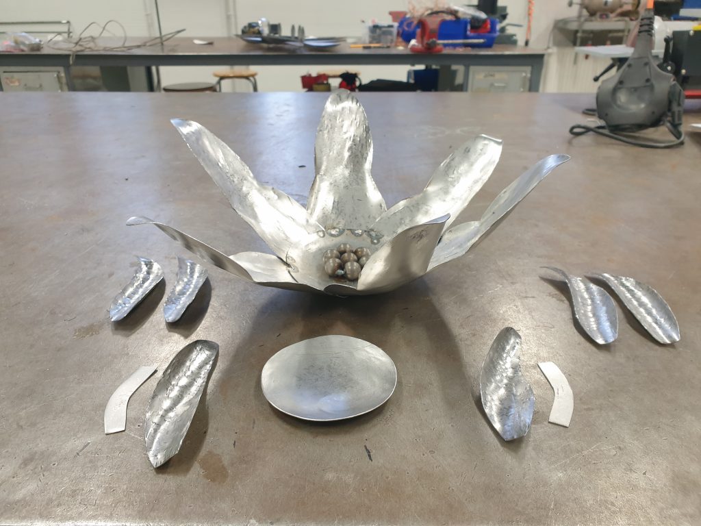 Ensimmäinen työni artesaanikoulussa oli tulikukka, eli metallista tehty kukka, jonka sisälle tulee sen valmistuttua jokin valonlähde.