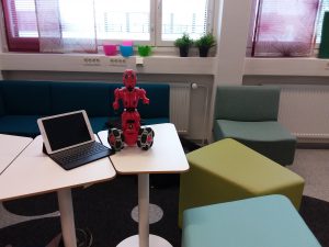 Tänään olemme toteuttaneet tuote-esittelyä videoimalla ja työstämällä digitaalisia postereita. Tapasimme myös robon, joka hauskuutti aamupäiväämme.
