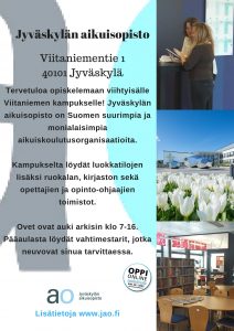 Liiketalouden perustutkintoa suorittavat opiskelijat harjoittelivat sähköisten poster-ohjelmien käyttöä. Tuloksena Viitaniemen kampus-poster.