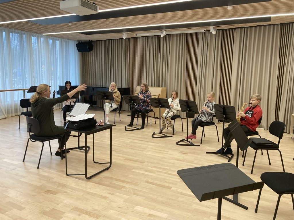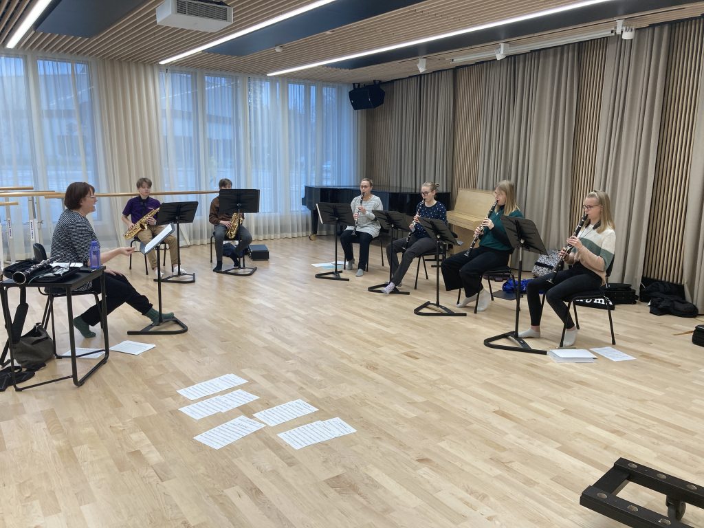 Tanja Järvelä ohjaa Vireen stemmiksissä klarinetteja ja saksofonistia.