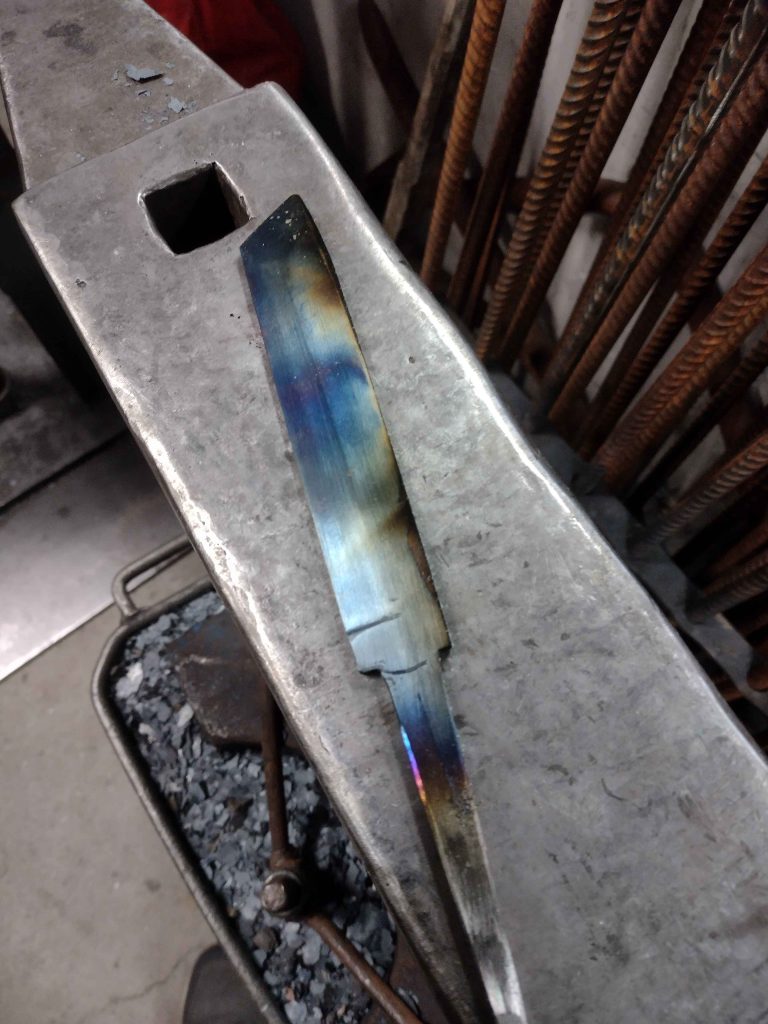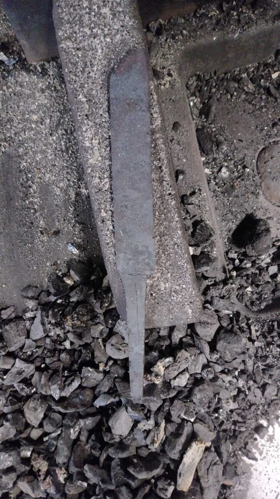 Puukon aihio taottuna.
