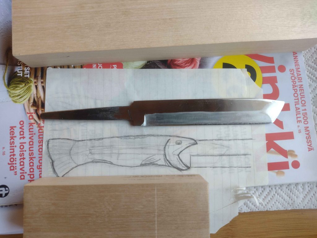 Muotoon hiottu puukon aihio.
