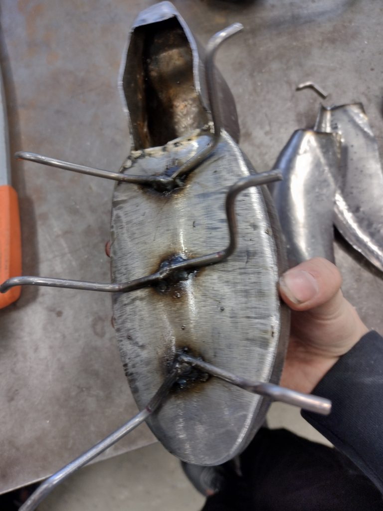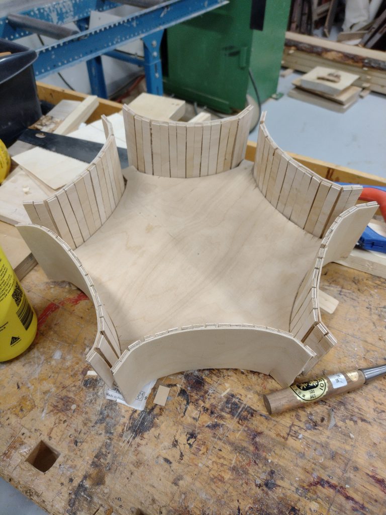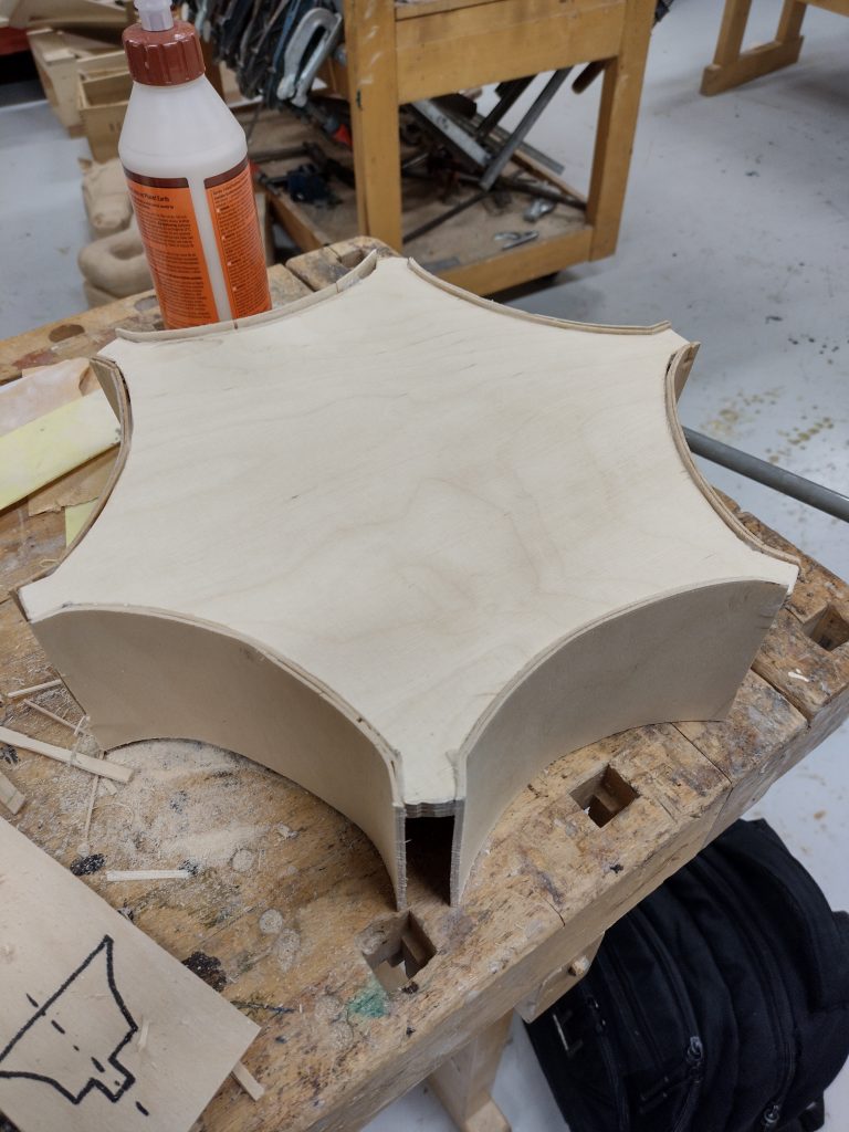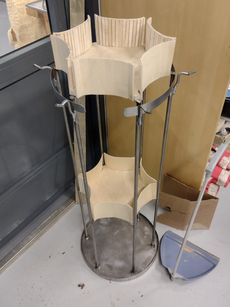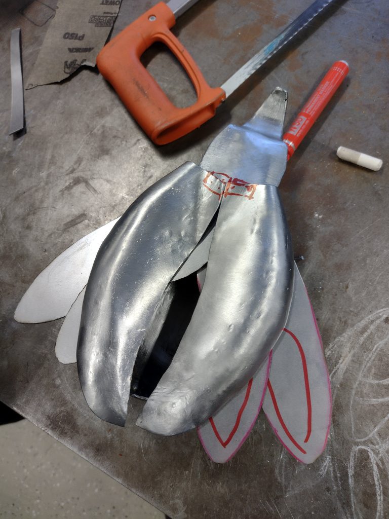 Pahvimallin jälkeen aloitettiin jalkojen sorvaamisella.