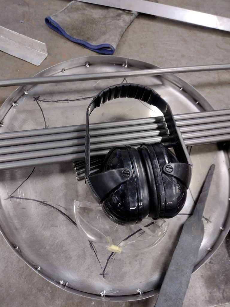 Pöytä levyjen leikkaus oikeaan muotoon.
