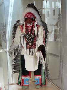When discussing the topic, both Finns and Canadians felt the need to acknowledge racistic attitudes and behaviours the indigenous people have experienced. It’s an ugly part of history, but should not be forgotten or overlooked. In Canada the First Nations people still face challenges, with systemic racism as the police sometimes treat the indigenous people as more of a threat than someone to protect. The Finnish police seems more unbiased, but some people are still uneducated and afraid of the Sami people and their culture. On a brighter note, most Finns and Canadians try to be respectful and try to support the indigenous people in any way they can. A lot of the discrimination directed at the indigenous people in both countries came from ignorance and fear of the unknown, so both countries have started to teach more about the indigenous people in schools. Also, to bring the cultures to light Canada has a rodeo called Calgary stampede, which brings the indigenous people together by creating jobs and rodeo fans. In Finland schools invite Sami people to present their culture and perform dances, songs or tell traditional stories. Under this paragraph we have a picture of the traditional clothes of the Sami people. The other picture is of one of the traditional First Nations tribe clothes from the Niitsitapi school.