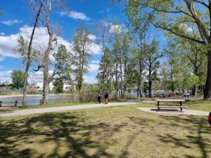 Even though all the day’s activities were amazing, my personal favourite was walking around the Prince’s Island Park, located on Prince’s Island on the Bow River. On our way to the island, we crossed the Peace Bridge which is one of the most iconic landmarks of downtown Calgary. The park itself was full of families enjoying their holiday in the warm and sunny weather. I even had my first experience encountering the bird that is often considered a national symbol of Canada, the Canada goose.