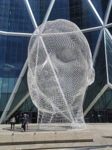 My host family offered to show me around downtown Calgary so that I could have a glimpse of the lifestyle in the city and see some of the most famous local sights. The weather was most definitely on our side as the sun kept shining throughout the day and the temperature rose sufficiently to create a warm, summer-like atmosphere. The first city sight we stopped by was an impressive manifestation of the local architecture, a skyscraper called The Bow, and “Wonderland”, a beautiful sculpture of a girl’s head situated right in front of the building. Overall, Calgary’s architecture and especially the newer buildings looked quite different from the ones that I am used to seeing in Finland, as many Calgarian office and apartment buildings are skyscrapers in various shapes and sizes.
