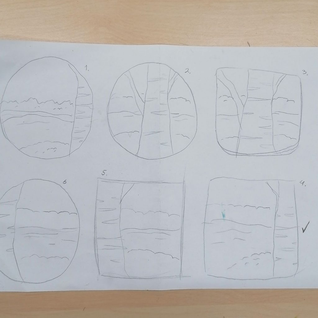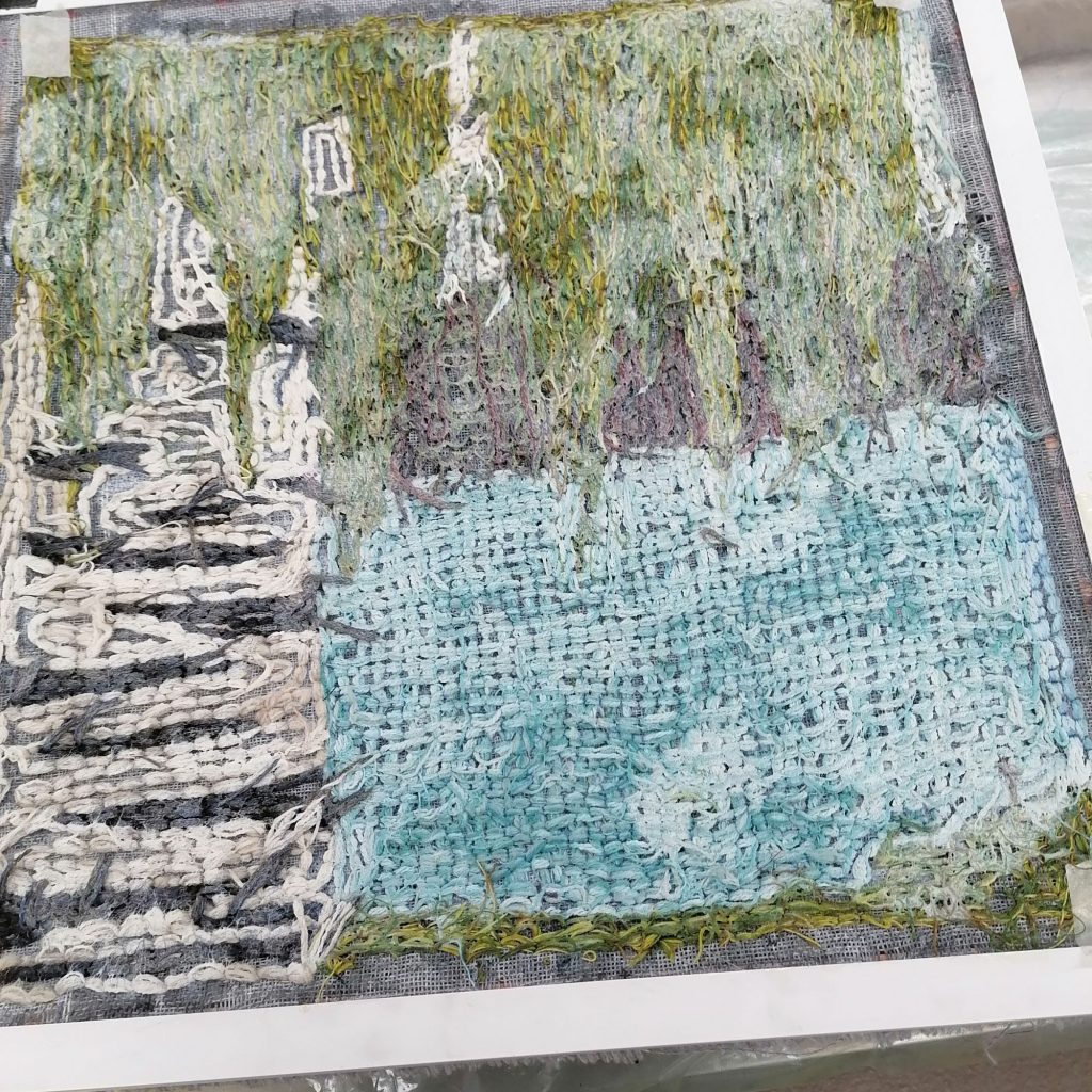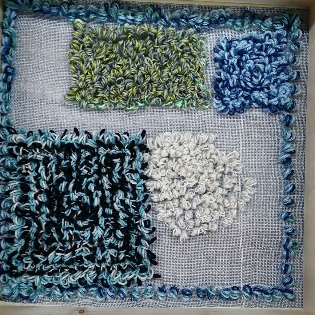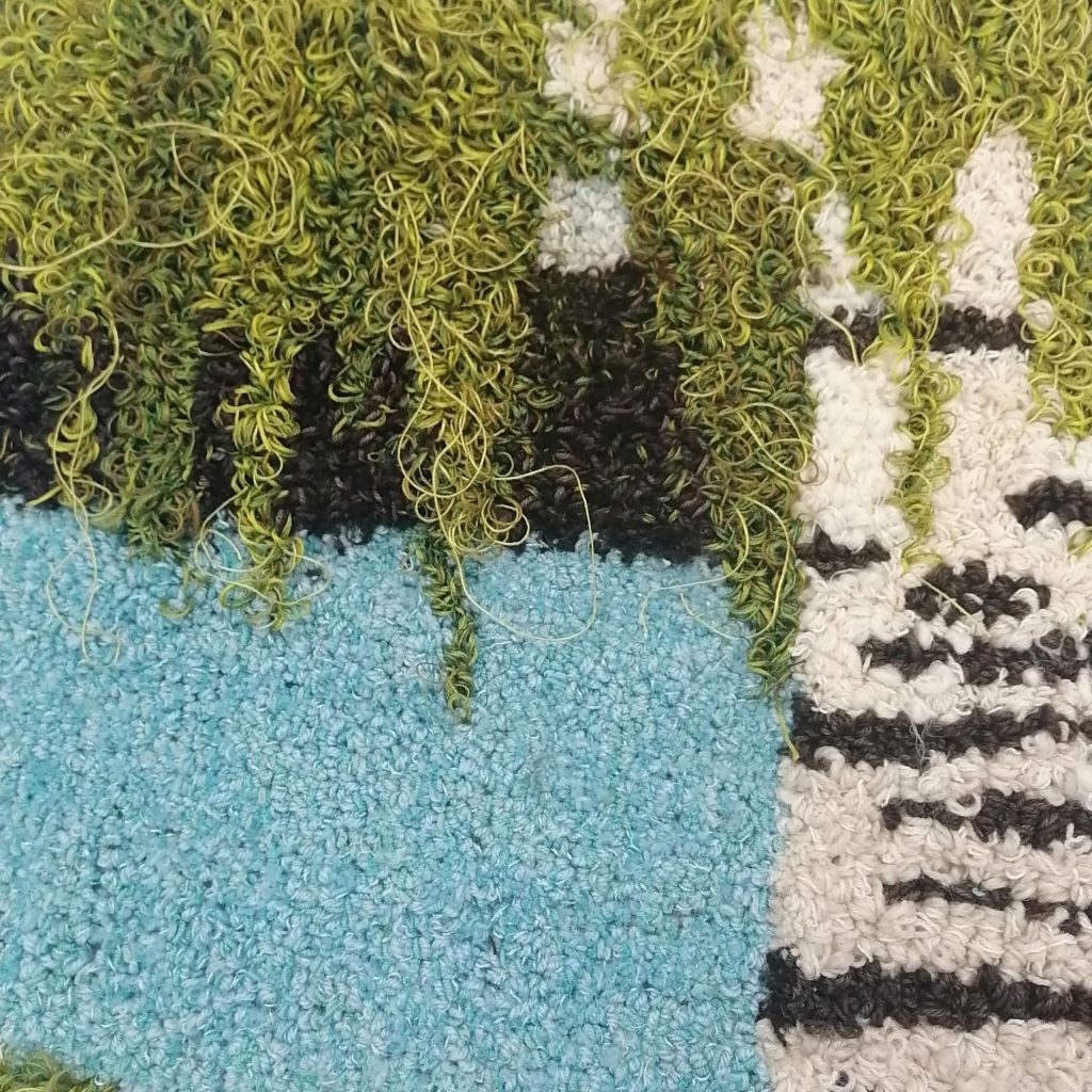 Asiakas työ on isälleni. Tein ensin luonnoksia työstä ja näytin ne asiakkaalle. Silloin kun hän oli valinnut, tein harjoituksia ja sitten kun olin valmis, pingotin työn kehään ja aloin tuftaamaan. Tämä oli ensimmäinen iso työ käsin tuftauslaitteella. Ja sitten kun se oli valmis, liimasin takapuolen, ostin kehyksen ja trimmasin tuftaustyön.