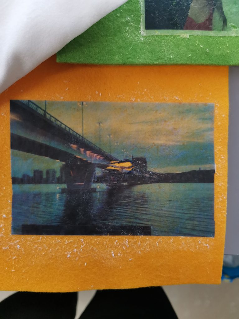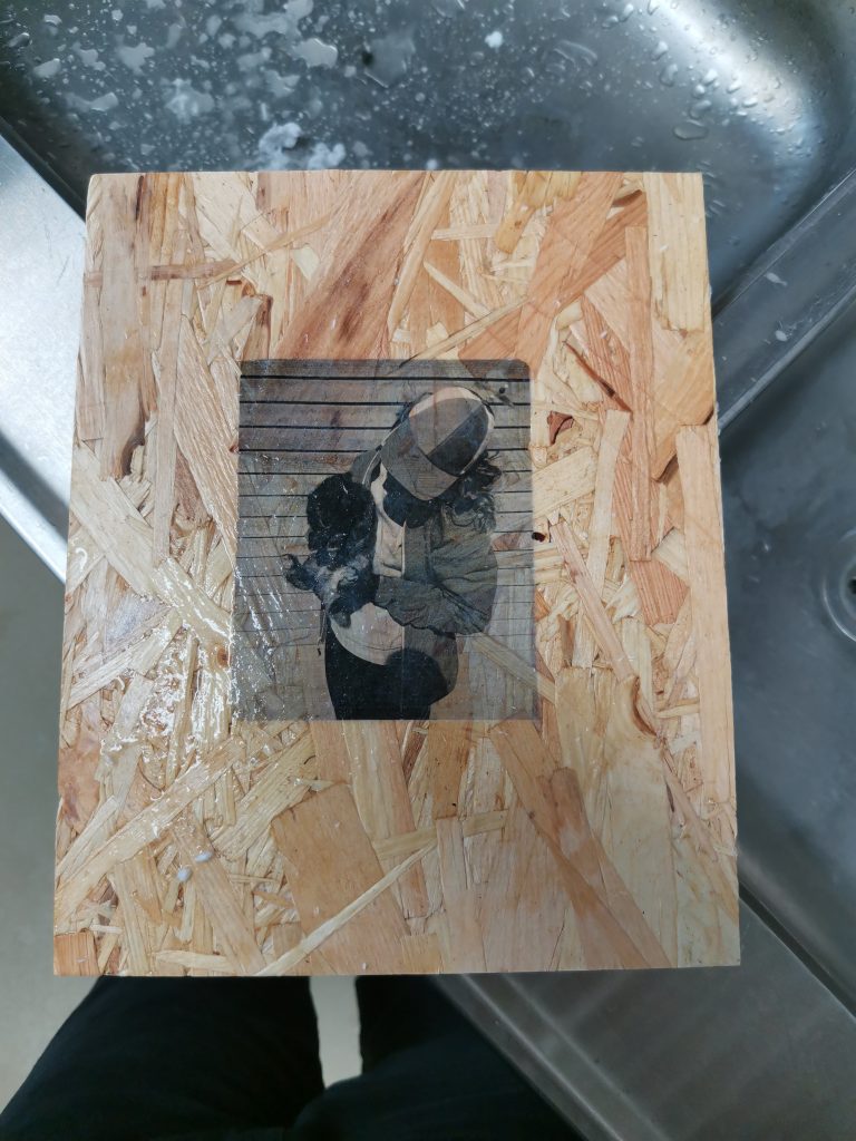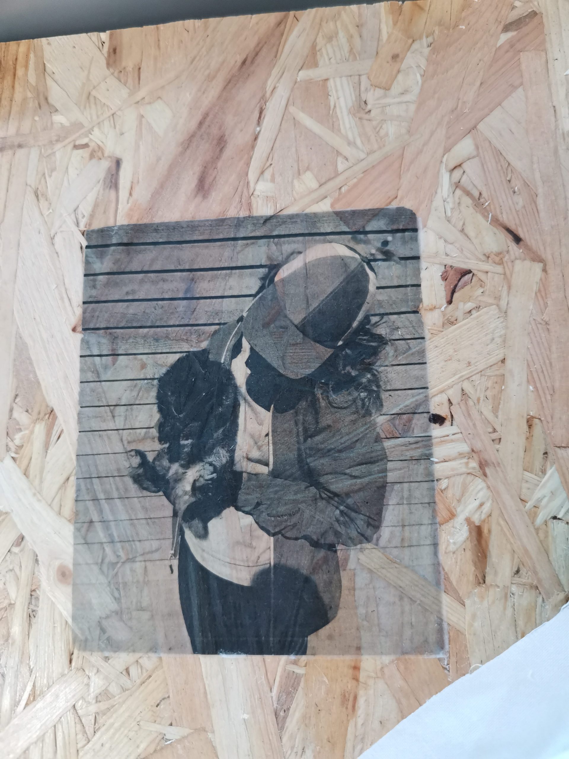 Vaikka kuvansiirto oli tuttua, tuli silti muutama moka. Tässä paperin poistossa on hangattu liikaa, joten kuva on mennyt puhki.